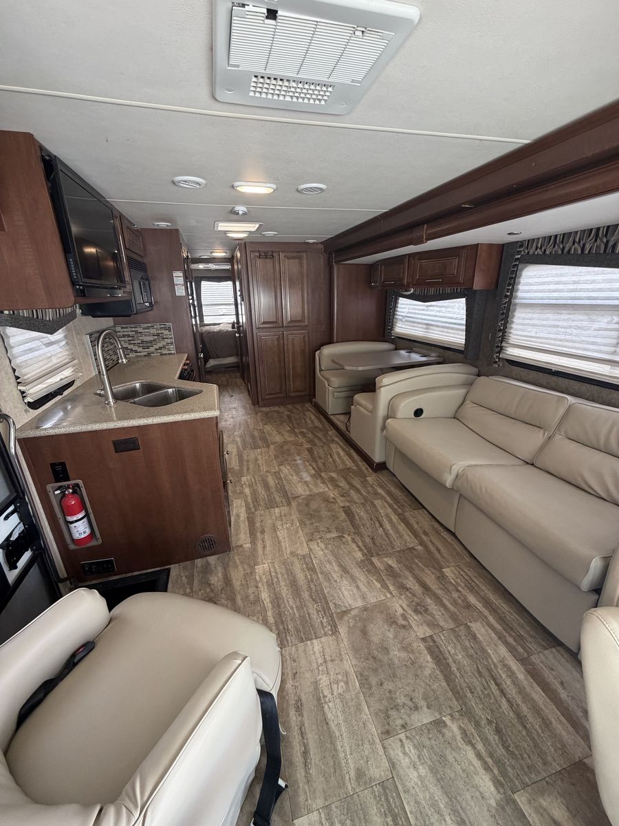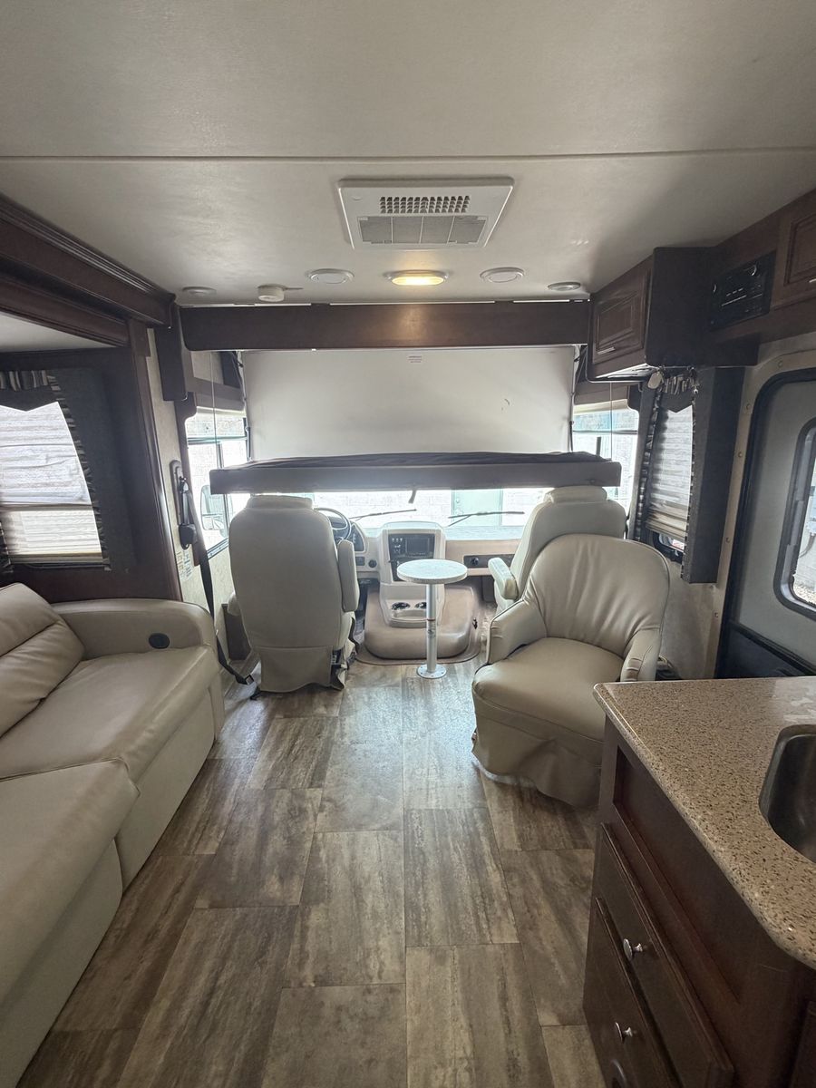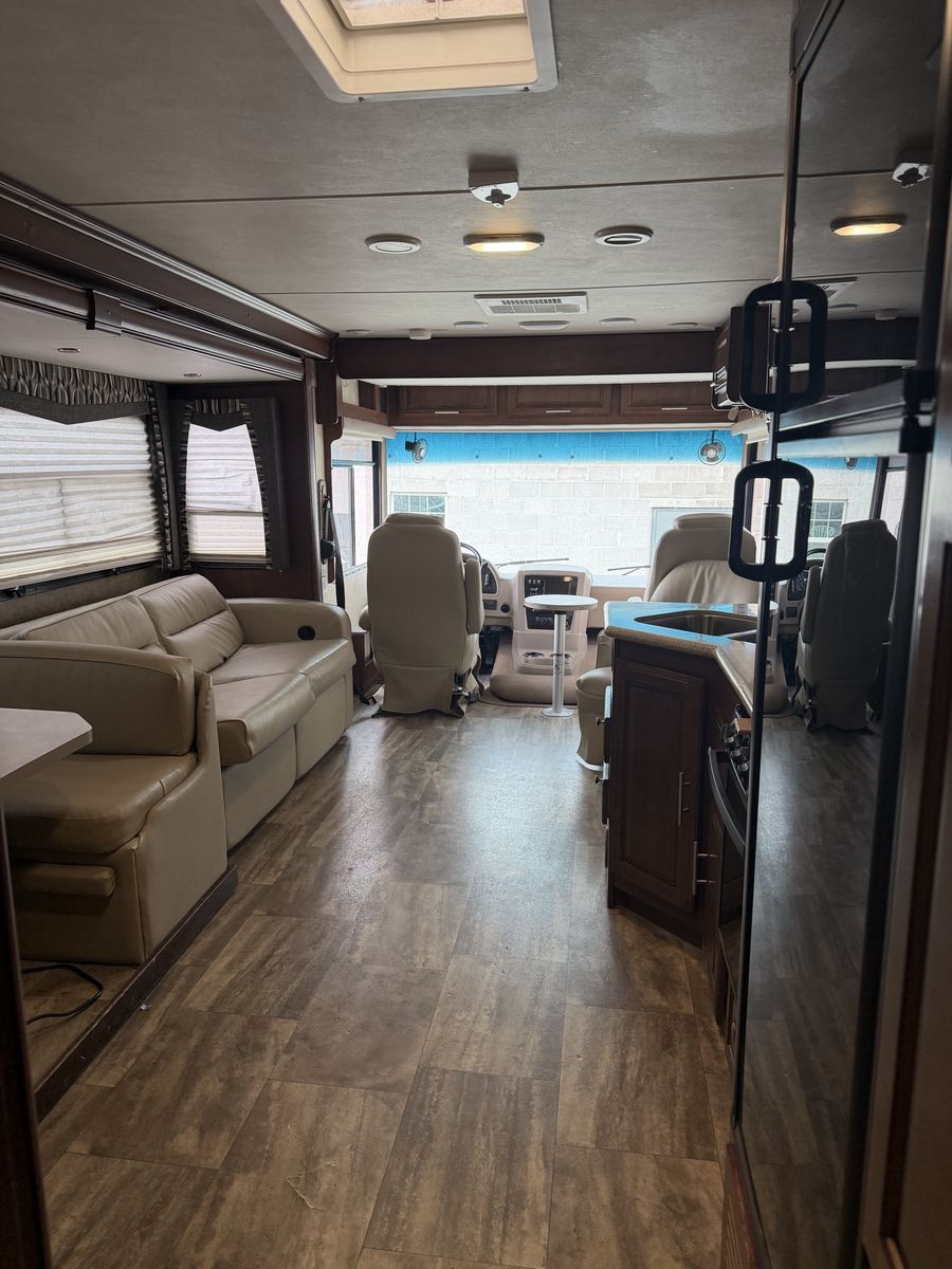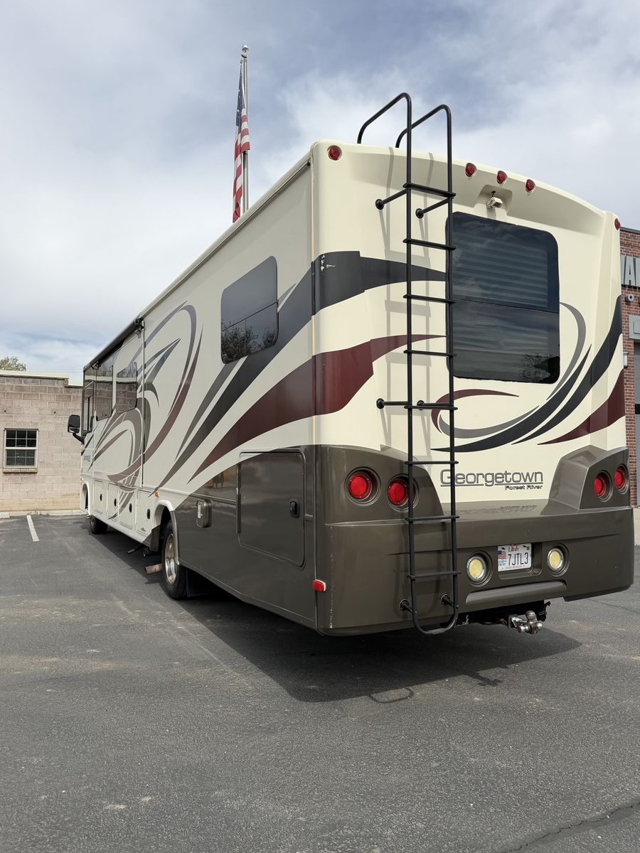 Clean motorhome, sleeps 8, stored inside. Upholstery all redone. Drives and rides good. V10 FORD engine. Back up cameras and side cameras. Generator works well. Tow hitch. Brake controller. Serviced regularly, Self leveling jacks. It’s been great for our family. Text is best to set an appointment.