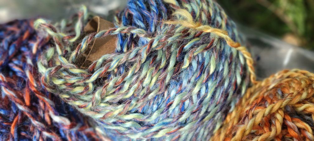 3 different color combinations aprox 1/2 skein each (I wound 2 cakes from each skein have 1 of each color remaining) I don't have the bands it is slightly chunky yarn Acrylic and wool blend