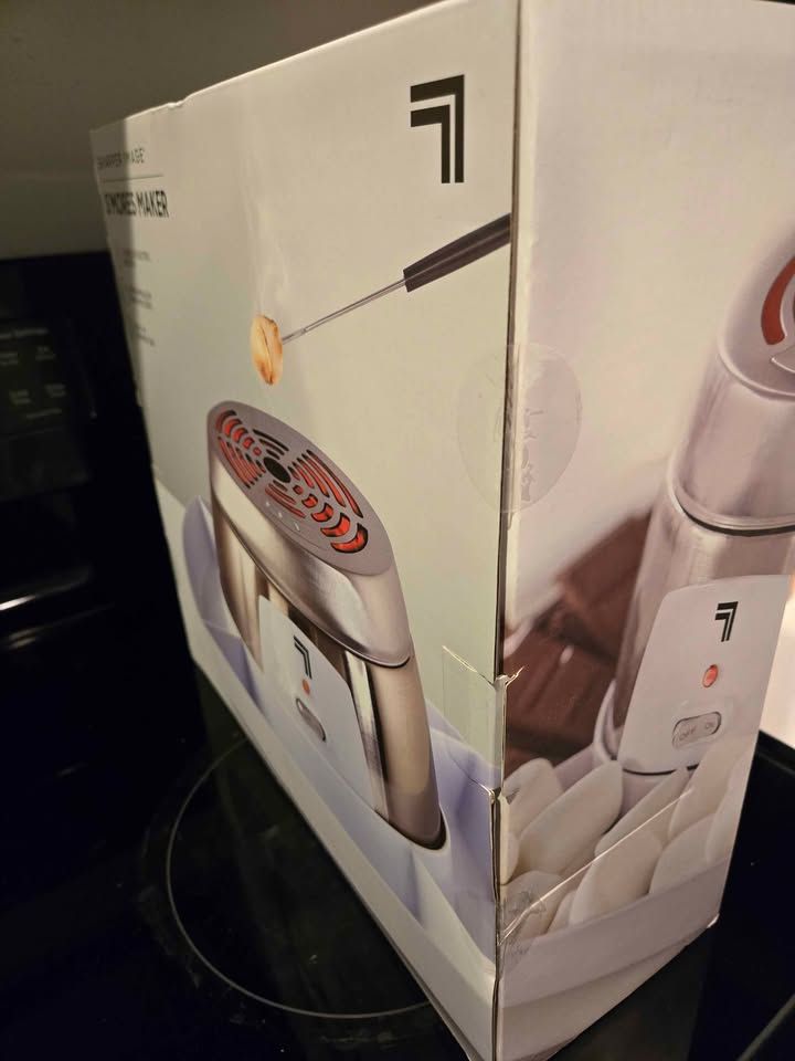 Brand new Sharper Image S’mores Maker, still sealed in the original box. Perfect for making s’mores indoors! Great for family nights, parties, or as a fun gift!