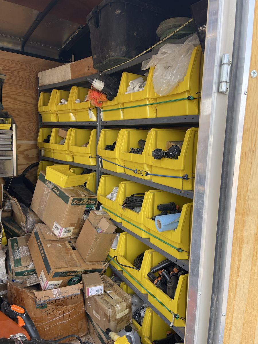 Most shelving & all lawn sprinkler parts inventory. All new parts. 1500 O.B.O.