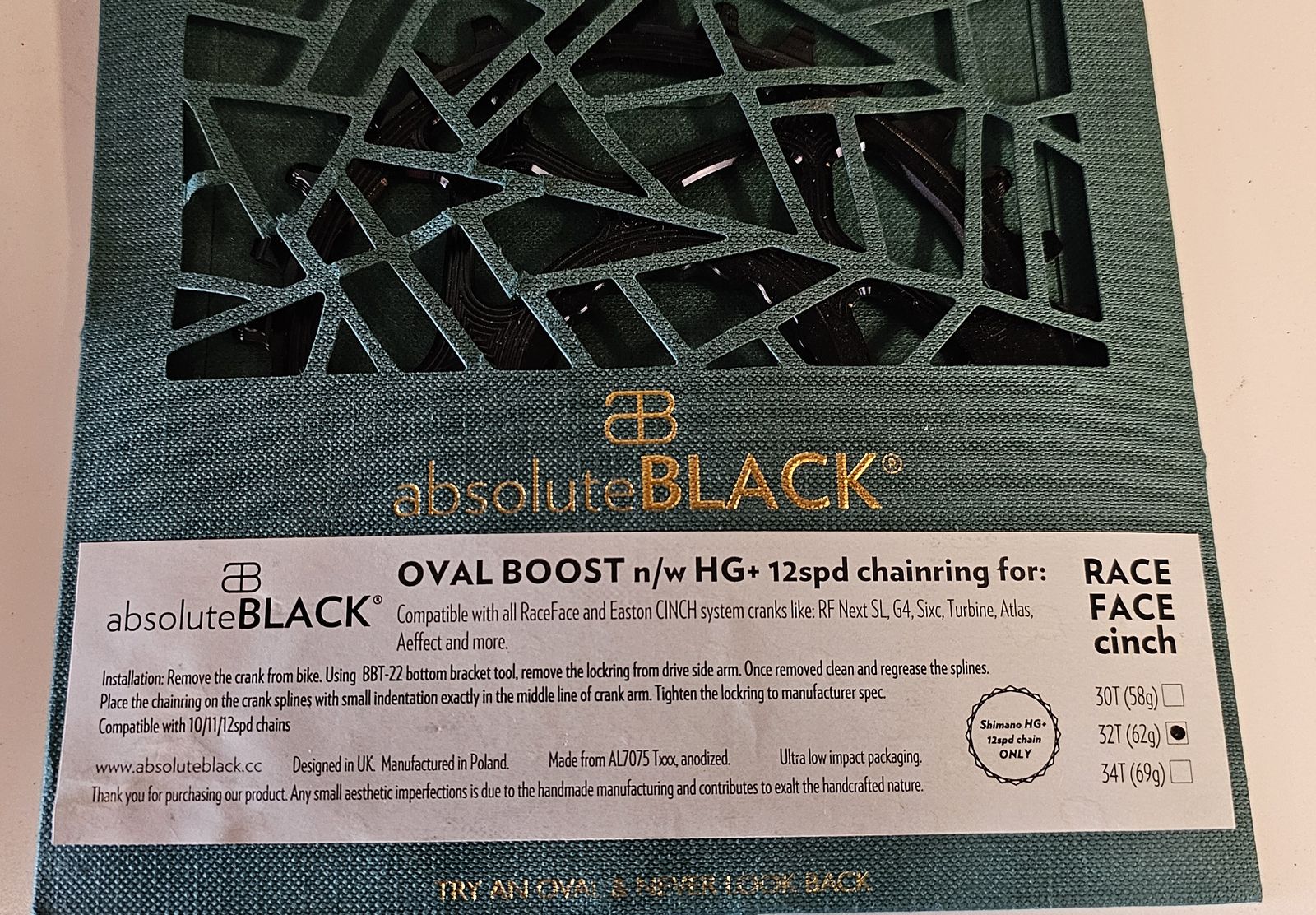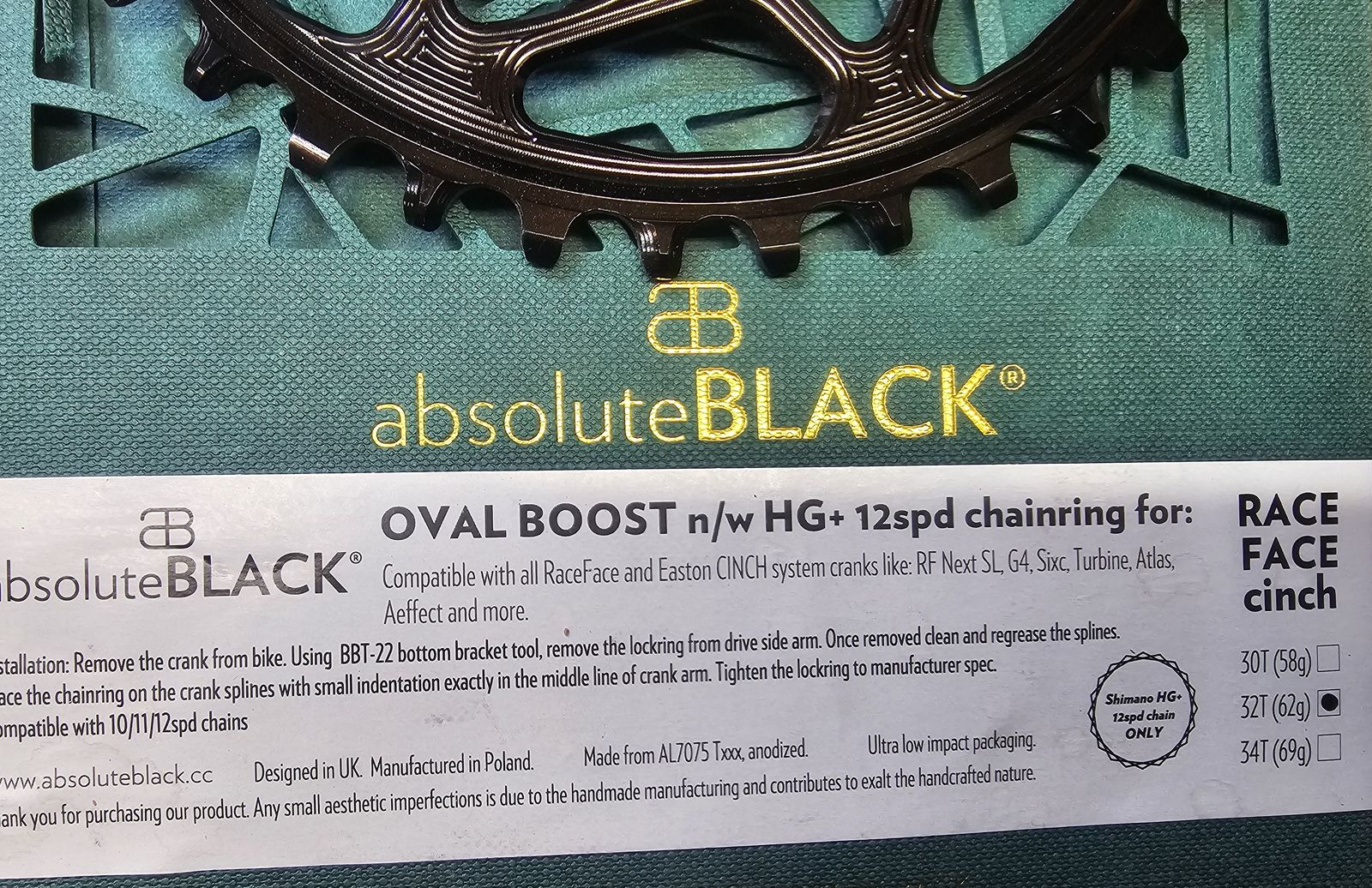 -Absolute Black 12 speed Oval Cinch/Boost 32t for HG+ (Shimano 12 speed). new $90