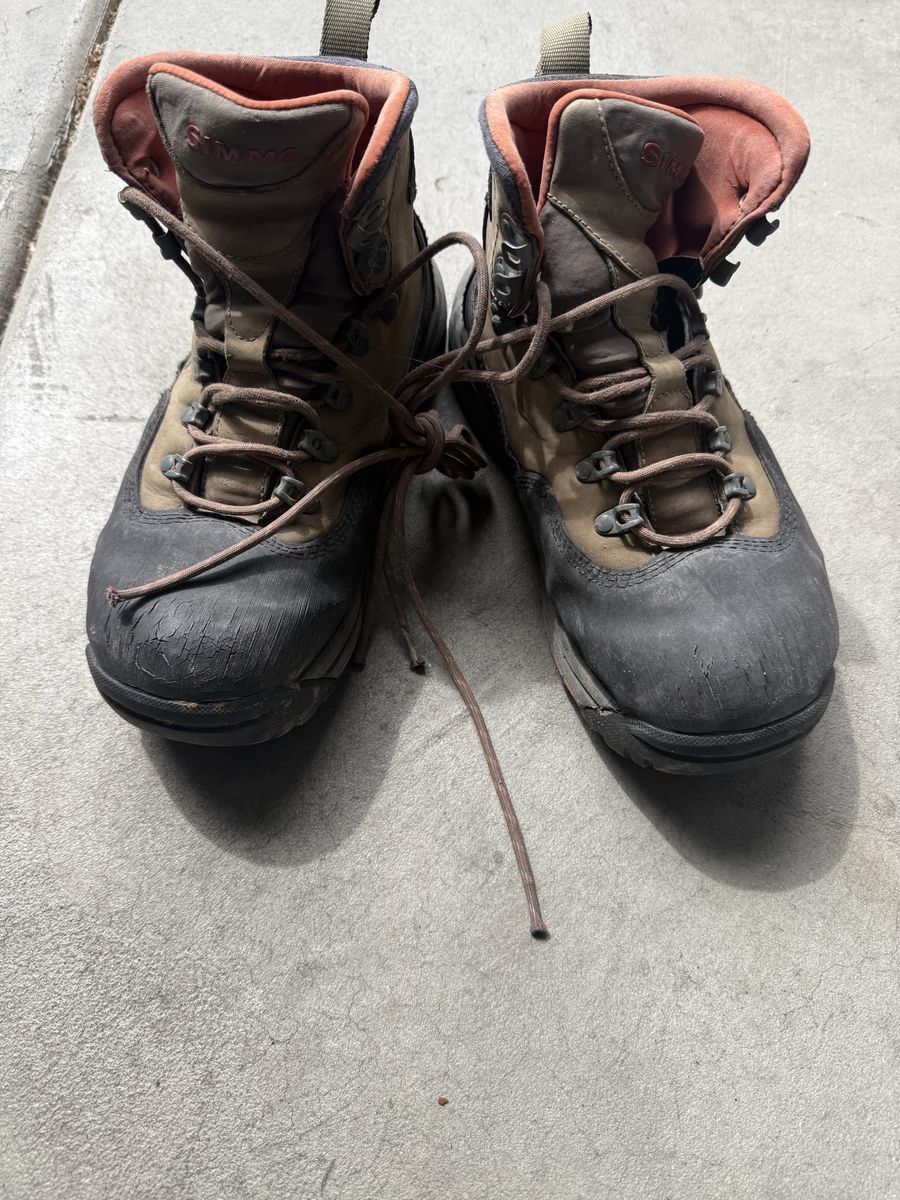 VenmoSize 10 Simms wading boots. I don’t use them anymore and they’ve been sitting in my boot bin for two seasons. The tow rubber is cracking