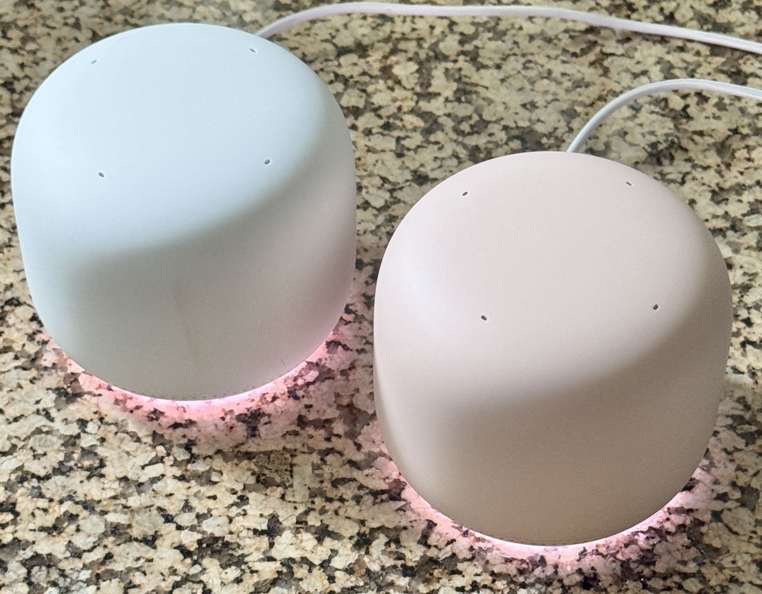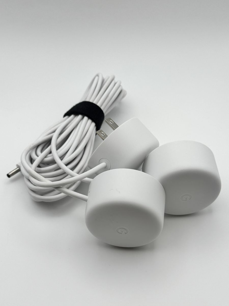 ApplePayGoogle Nest Wifi mesh setup for sale. Includes 1 router, 2 mesh points, 3 original power adapters, and Ethernet cable.