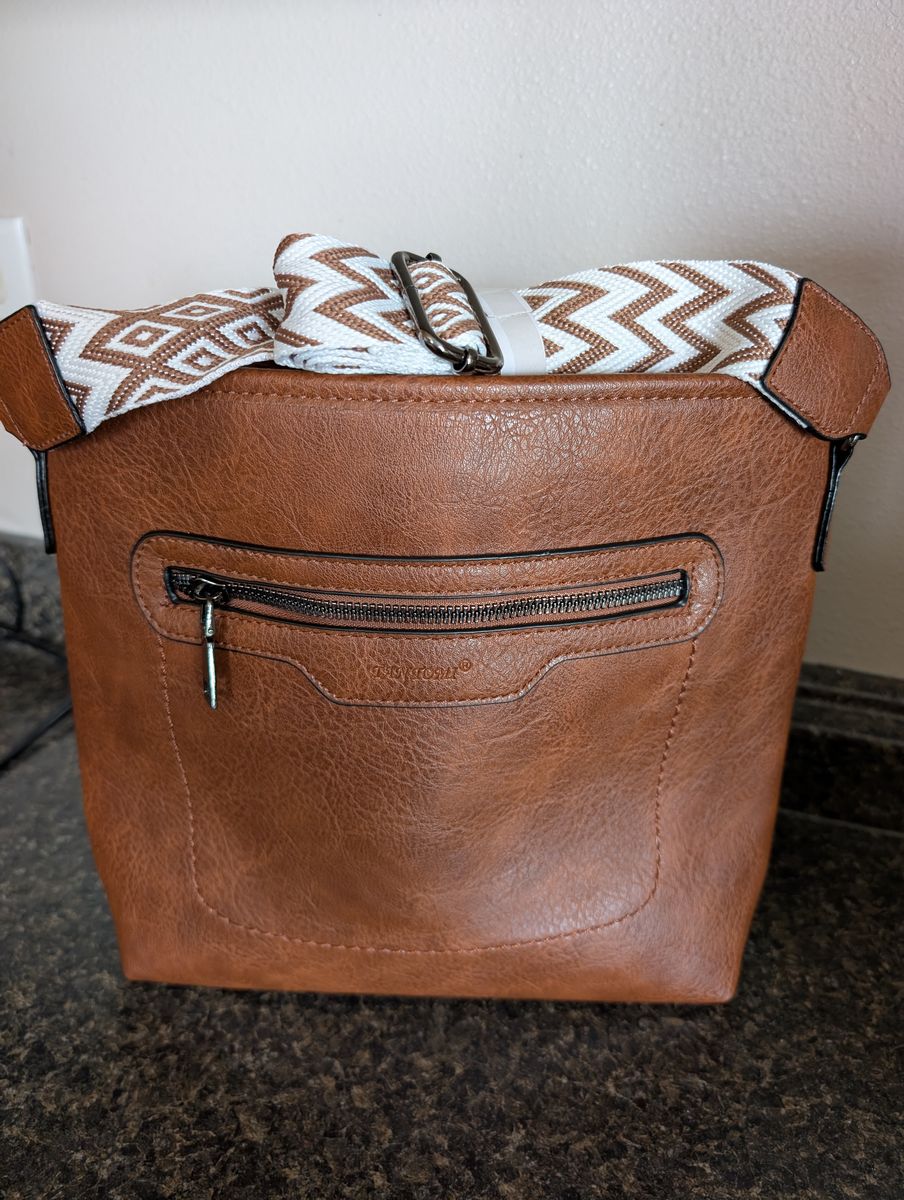 Brand New with tags, Brown Vegan Leather Crossbody Bag