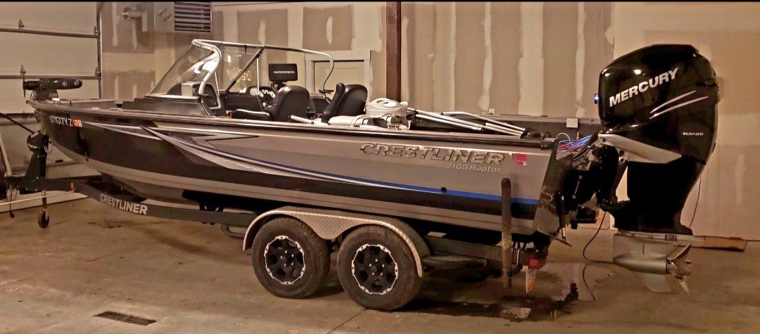 Amazing fishing boat. 21 ft Deep V with Mercury 350 Verado outboard. Always stored inside in heated garage. Brand New MinnKota Ulterra Quest 36v Trolling Motor with 72" Shaft. Always serviced at Robertson Marine. Trim tabs, Jack Plate, spare prop, new trailer tires, trailer aligned, All Weather top, zip in sides, travel cover, 9 ft rod lockers, wash down system, snap in Carpet, fold down rear bench. This boat is ready to go!