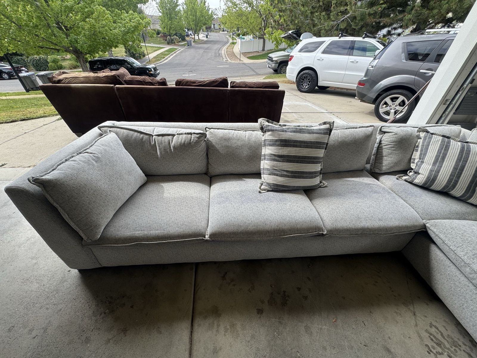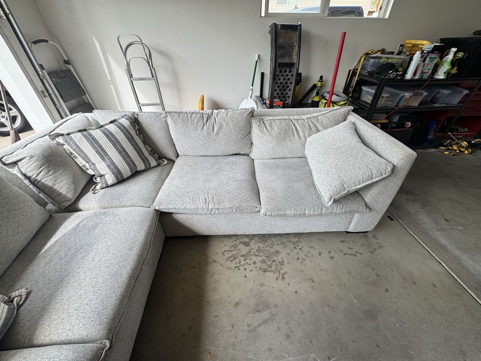 ZelleThis couch is very sturdy, spacious & comfortable . It breaks down into 3 pieces for easy moving. Covers come off for cleaning.