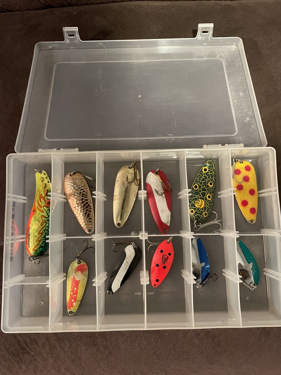 Fishing Spoons of diffrent style and colors. Many of the most popular spoons are here for your fishing/trolling experience