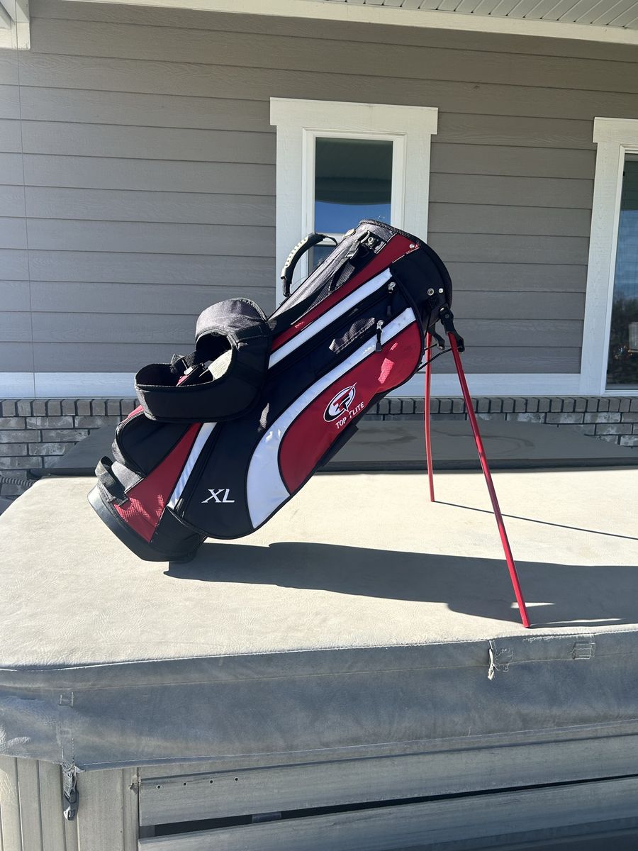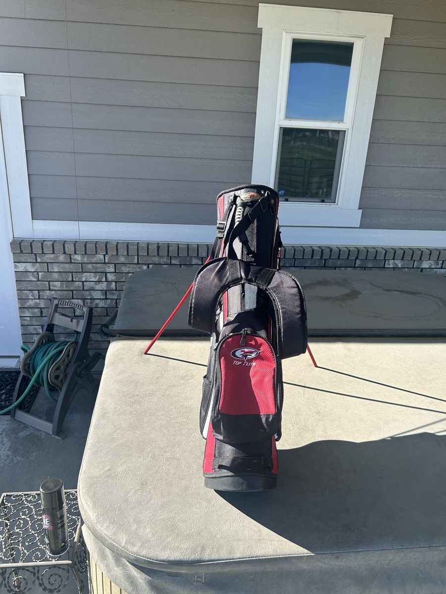Top Flight golf bag in brand new condition. This bag was designed to carry on the course. It’s got the straps on it. It also has seven pockets no wraps no tears. Everything is an excellent condition. $60.00 are best offer 8015404414