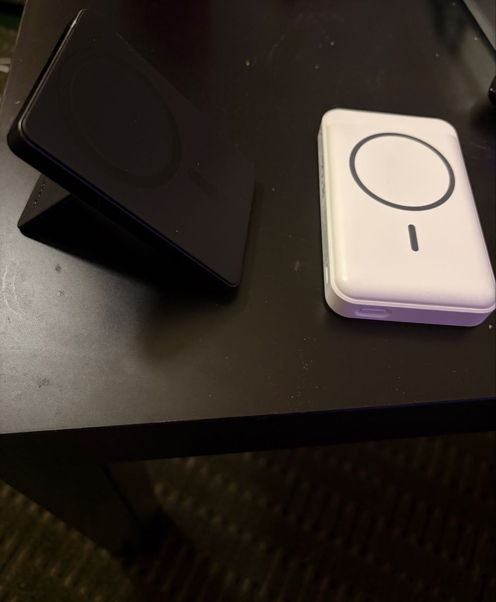 PayPalTwo like new MagSafe chargers. The white one is 10,000 mah and the black one is 5000 mah but has a built in stand on it