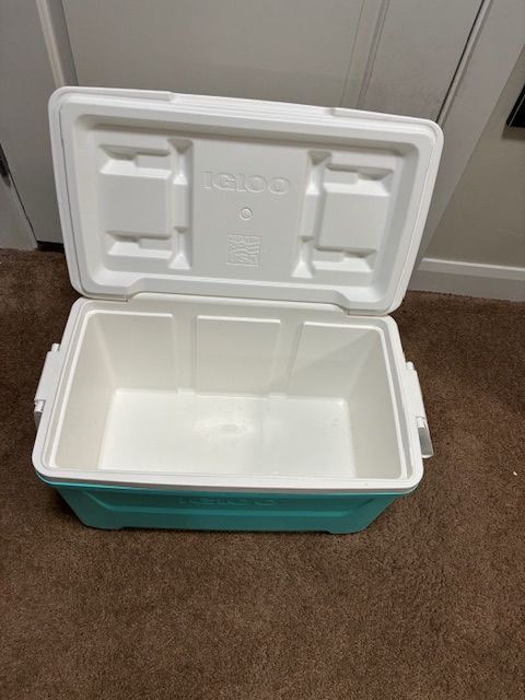 VenmoIgloo cooler. I'm not sure how many quart capacity, but I'd guess about 20 qt.