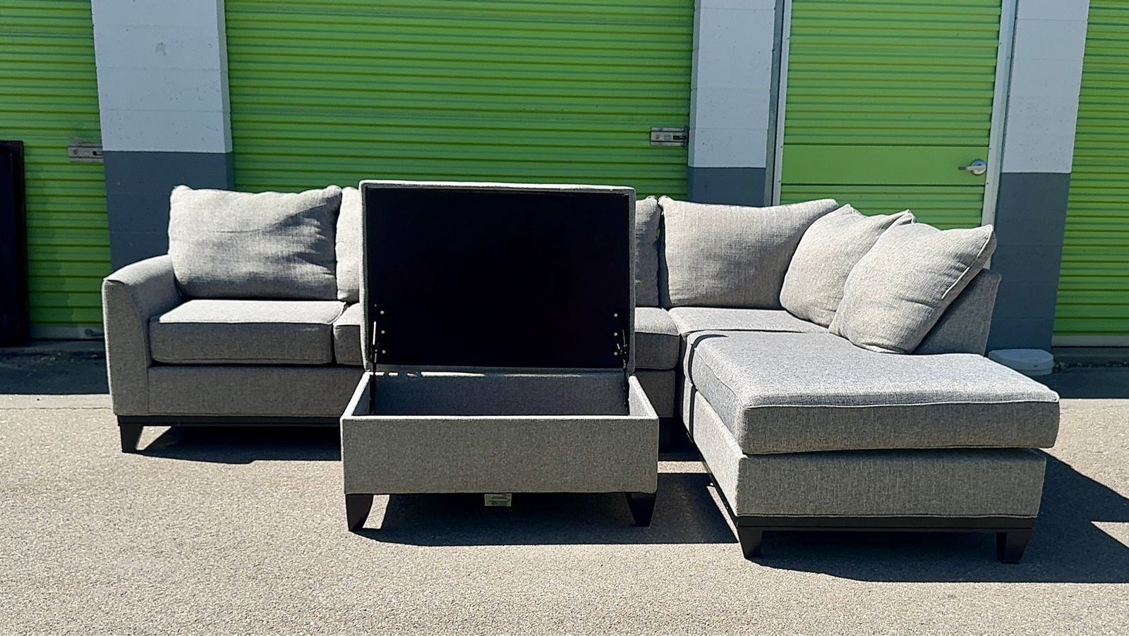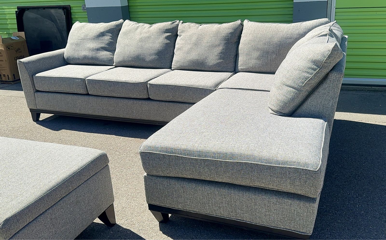 Things to note: -Chaise is on right side when looking at it from the front (left side when sitting on it) Dog friendly home Smoke free home đź§ĽNo stains on sectional (one small stain on ottoman, pictured) đź«§Cushion covers are removal and washable! -No tips or tears (All details shown in photos or video) Dimensions when put together are shown in photos
