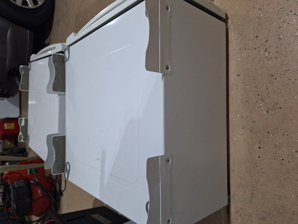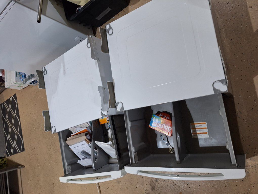 GooglePayIn excellent condition, theres tabs on the sides that were self adhesive so all that has to be done is to apply some double sided tape on those brackets to secure the unit to the pedestal. I believe they will work with any brand of normal size 27inch wide washer and dryer.