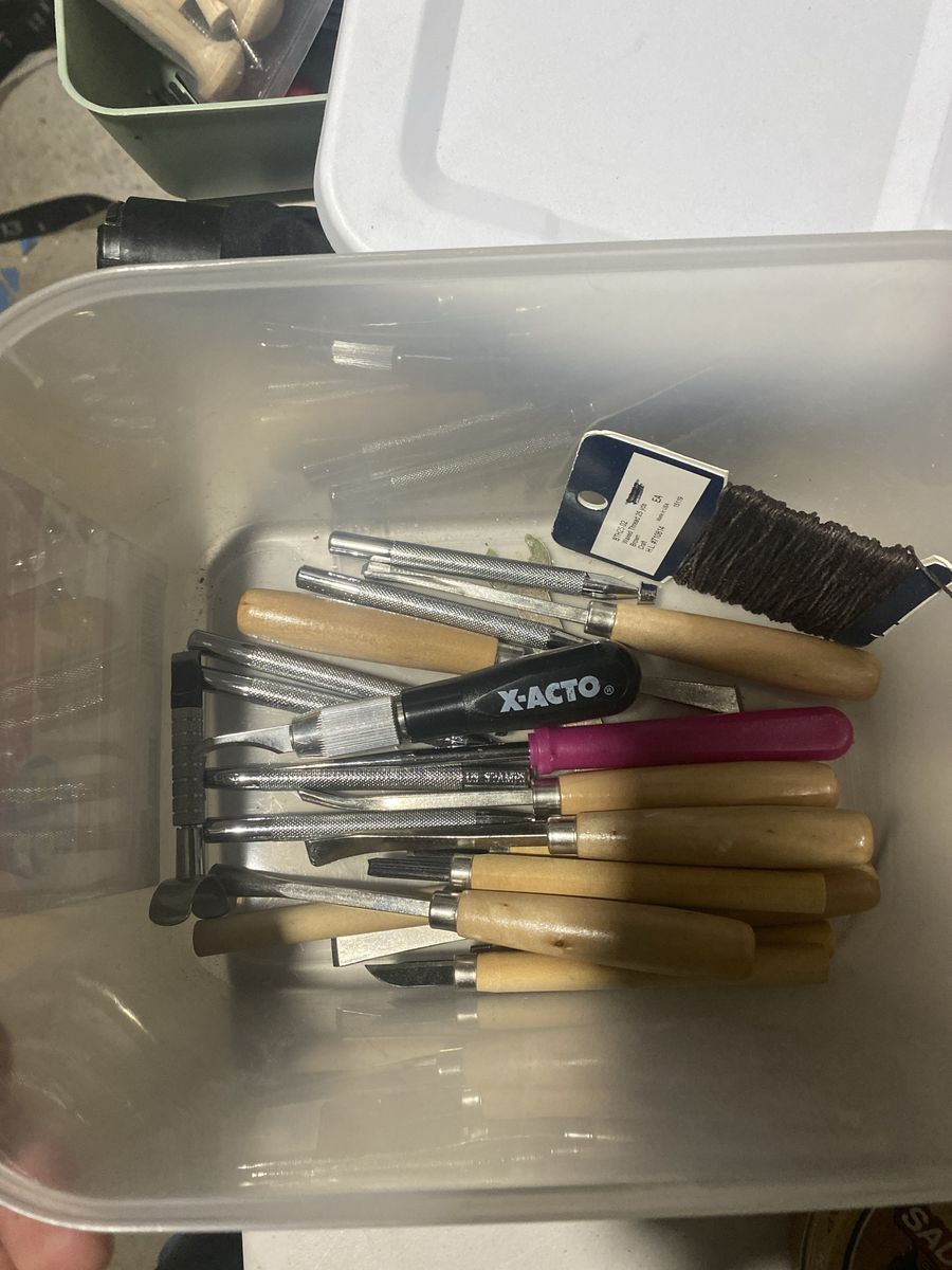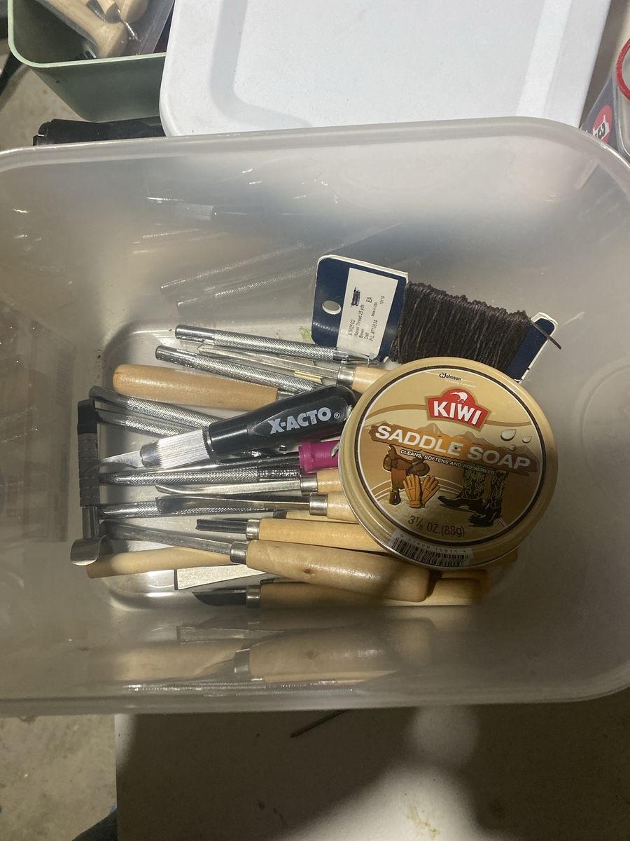 VenmoMinimally used ass assortment of wood, carving tools, and leather, working tools with saddle soap