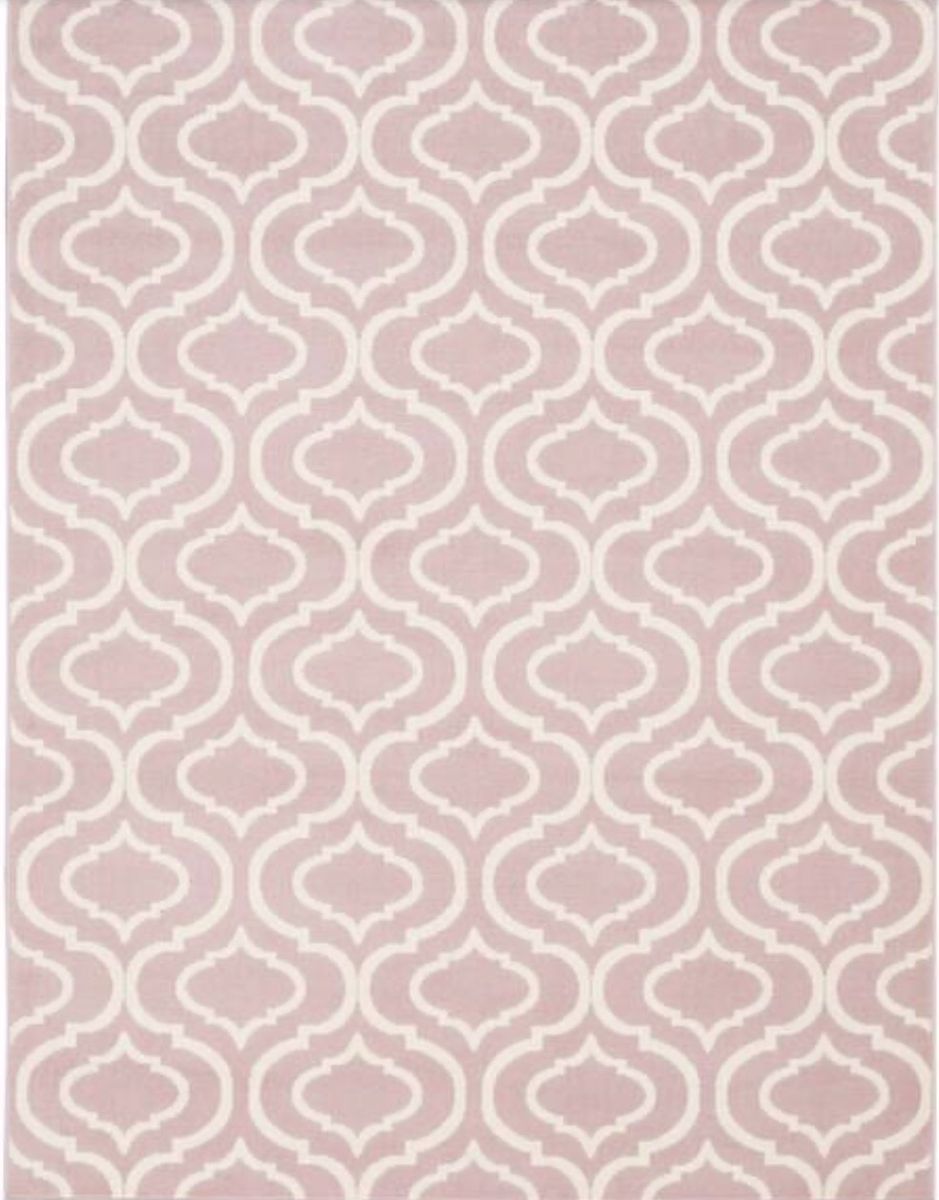 New. Pink Trellis 6x9 Area Rug. Easy To Clean.