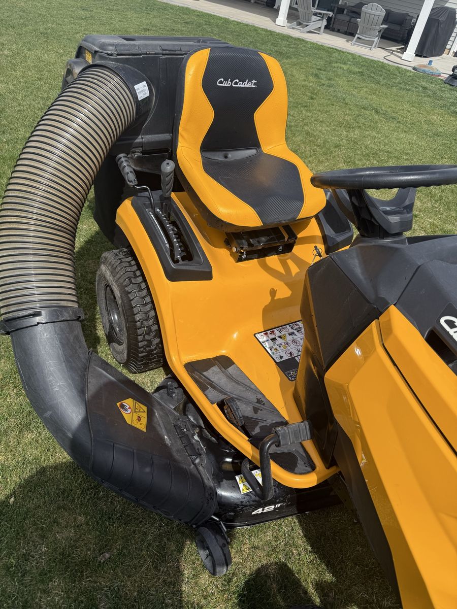 Cub Cadet XT1 Enduro Series riding lawnmower. Runs drives and cuts great!!! Just got a full service done to it. The blades were sharpened, fresh oil and new filters. It has a 19.5 hp Kohler engine and a 42 inch cutting deck. Comes also with a double bagger system to help keep your yard clean and perfect for the fall when you have to pick up leaves. Message anytime. Hablo español