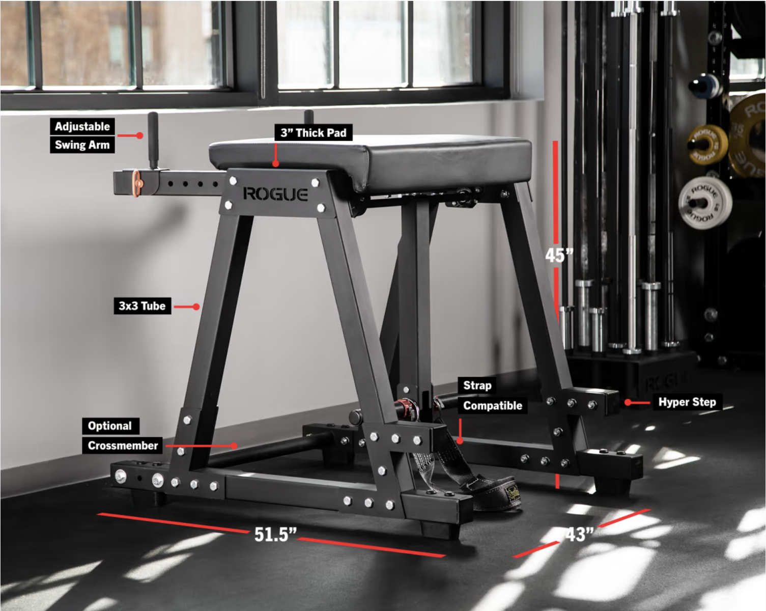 Rogue’s Reverse Hypers decompress the spine and produce no vertical compression on the spine at all. This simple device allows for dynamic strength development in the concentric phase, while serving as a rehabilitation mechanism in the eccentric phase. The spine is gently stretched and depressurized during the process, creating--in essence--an internal pumping mechanism, filling the spinal column with spinal fluid and the lower back muscles with blood. Anyone who has injured their back knows that the pressure needs to be relieved and circulation restored to the injured area in order to rehabilitate. The reverse hyperextension machine offers one of the best methods for achieving this.