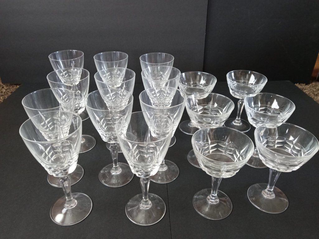 $30 for set of 6 sorbet glasses $55 for set of 11 wine glasses OR $75 for all 17 pieces.
