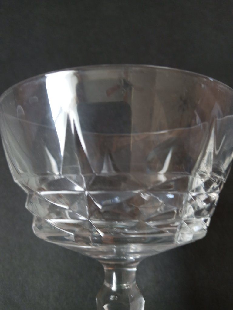 French -style authentic crystal glassware features a geometric, diamond-cut pattern (Google identifies it as "Chateaudun" design) .