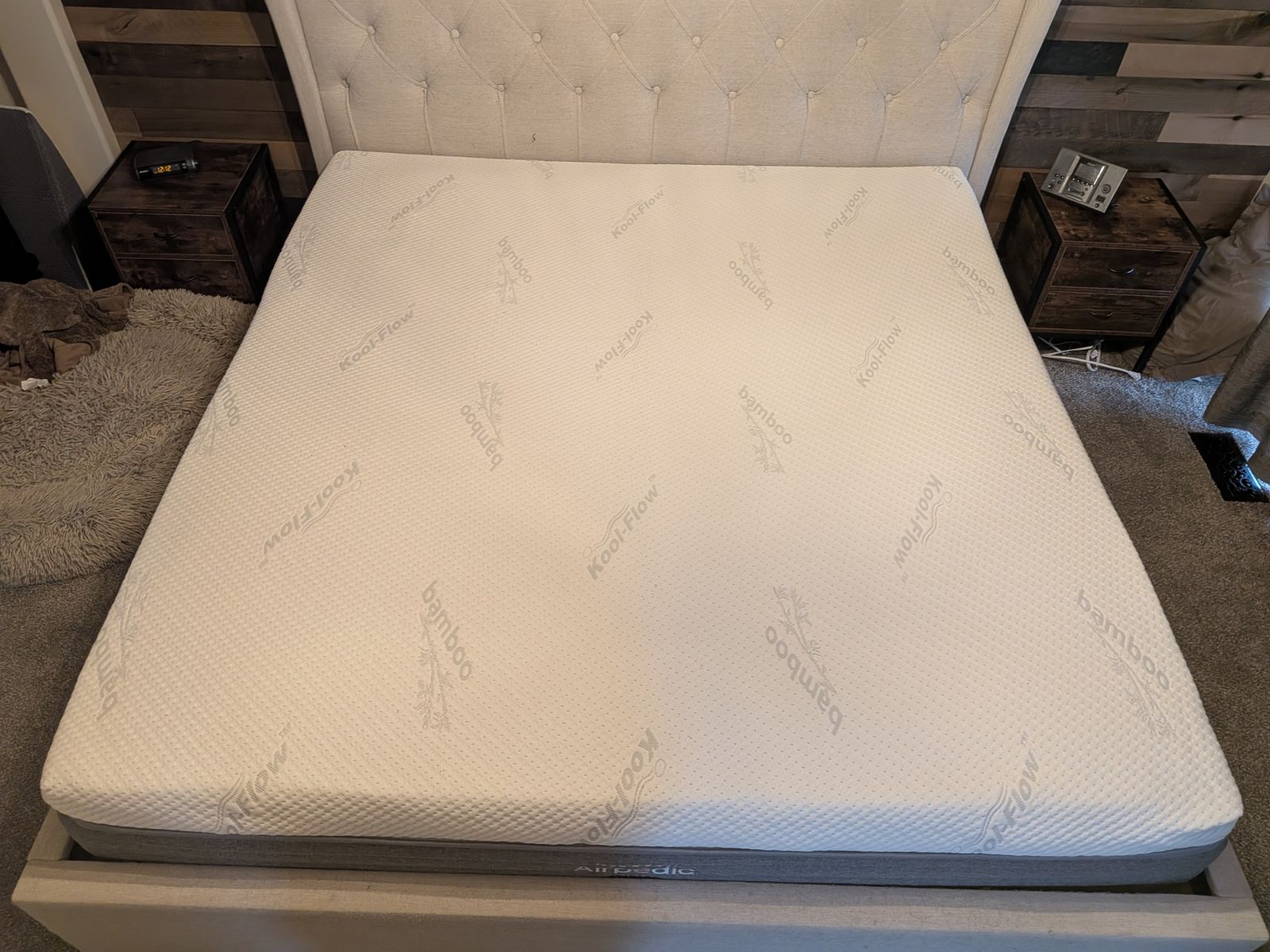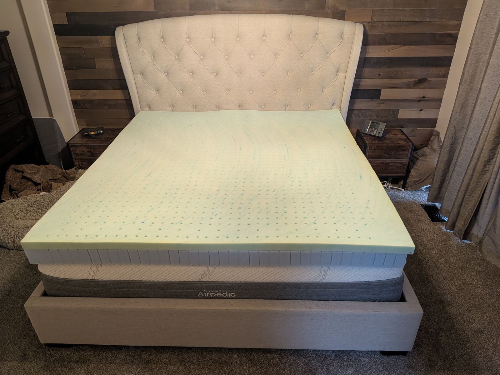 This mattress is like new, nothing wrong, just not what we needed and I barely missed the return window. We paid $4,000. It's been covered with an Airpedic custom gel mattress topper. The mattress will come with a different brand new, non-opened Airpedic 2" gel foam mattress topper, the pump and two remotes.