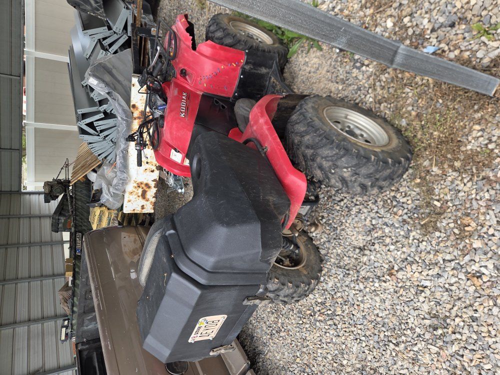 CashAppthis kodiak 400 has 4x4 at the push of a button, enough tread on the tires to last a few summers and seating for two. down sides the plastics are old and cracked, zip tie stitched in the front, brakes could use a little work, and the winch needs a solenoid i think. other than that it runs great and has never left me stranded. any reasonable offer considered. not looking for any trades. title in hand.