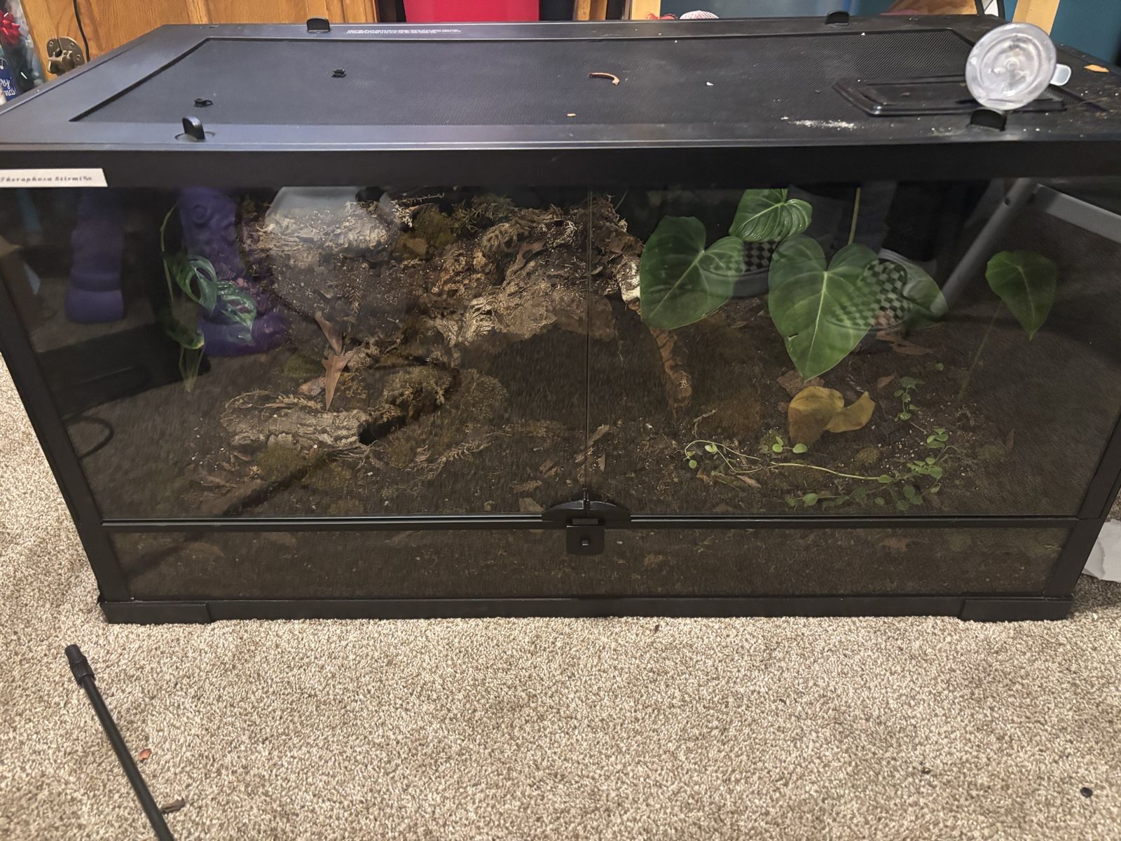 40 gallon for $150 with substrate, two plants, some ground cover, and cork? I’m not sure if it’s reptile or amphibian safe because it has perlite in the soil. Pm if interested!