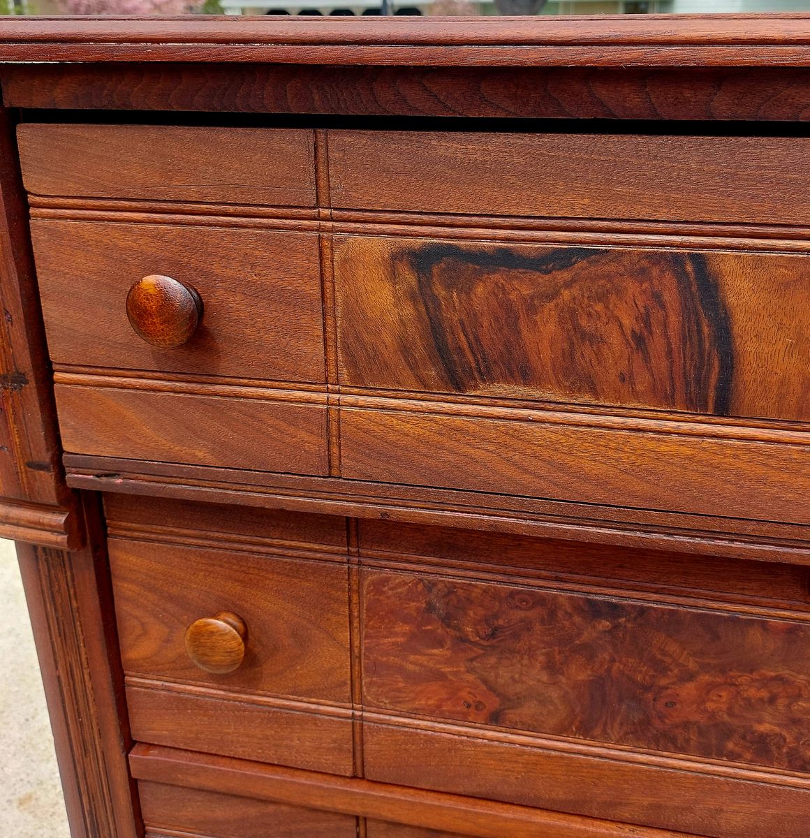 VenmoThis is a very nice antique Flame Mahogany Eastlake dresser with 3 drawers. The drawers work perfectly and are pin and cove dovetailed. It was made in the 1880s. It has functional wheels. It measures 34" tall by 39 1/2" wide by 18" deep. No holds. FCFS with CASH or Venmo. In Murray. 435-249-1305.