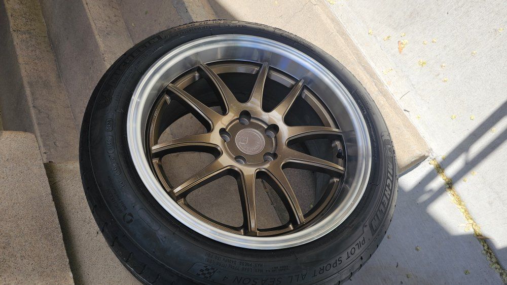 selling my old set up. Aodhans DS02 18x9.5 +30 5x114. only two wheels with tires. Tires are Michelin Pilot Sport All Seasons XL. Manufactured year is 2022. Plenty of tread as seen in pics. Tires are 225 50 18. asking 450$ for both. no trades. Cash only. willing to meet in the ogden area.