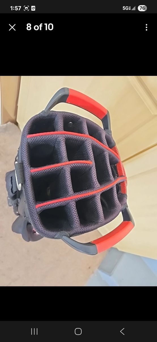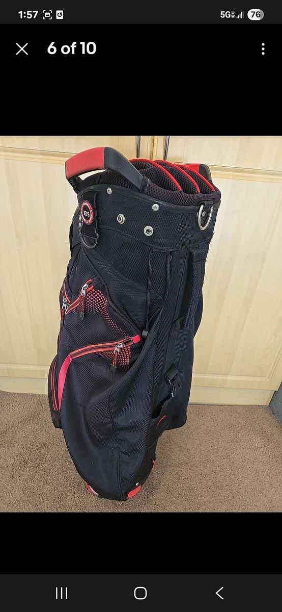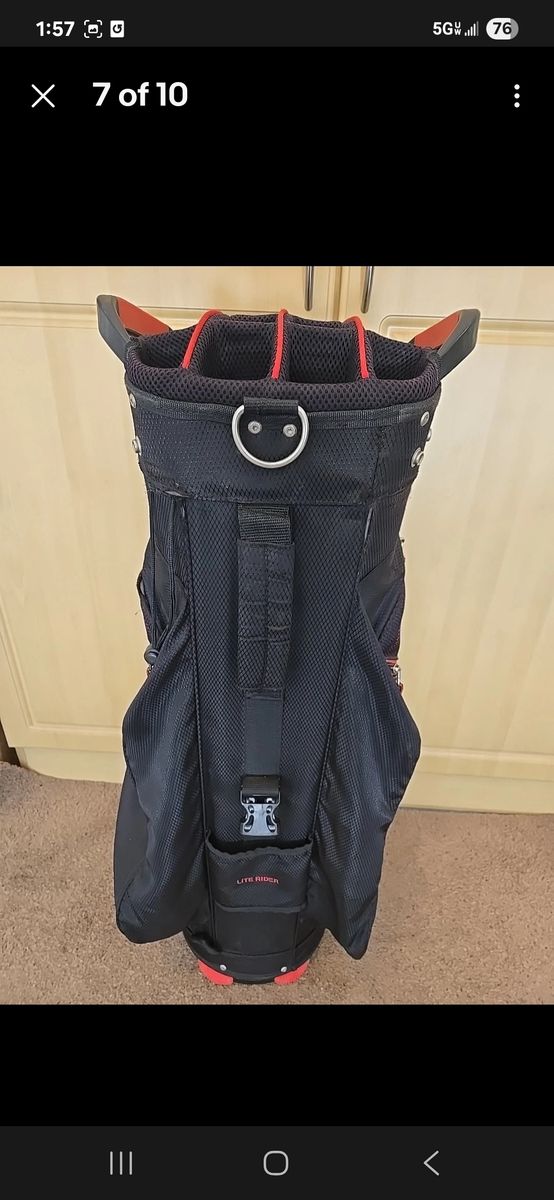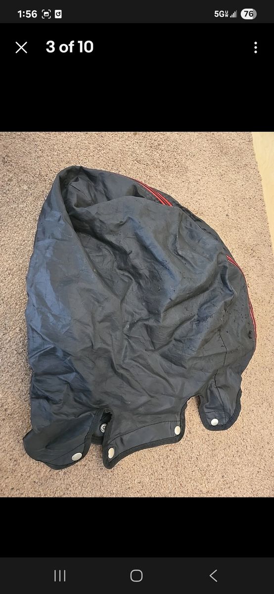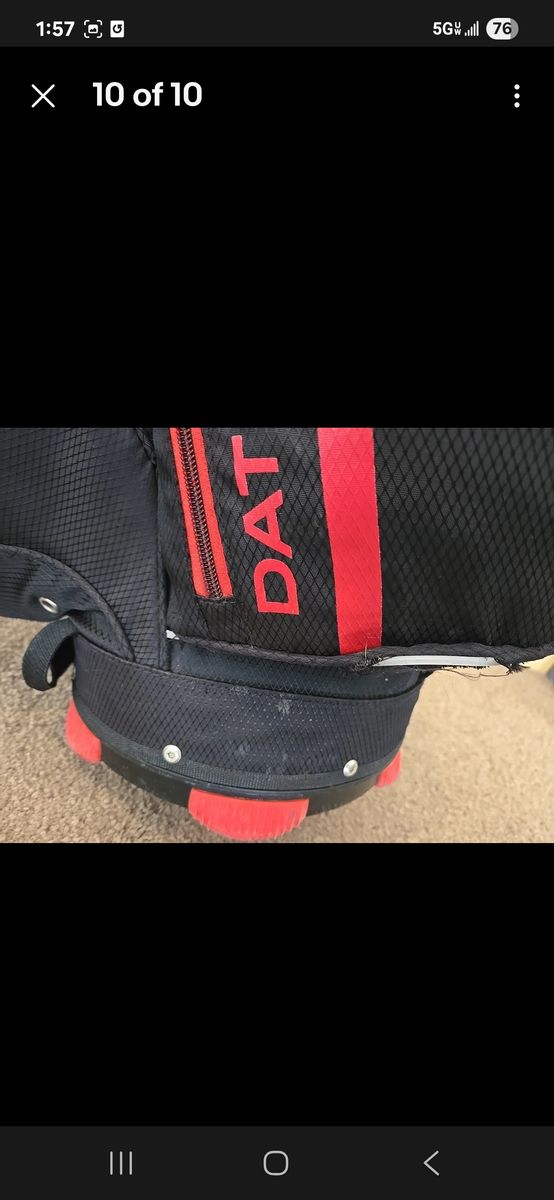 Overall pretty good shape for a nice, lightweight bag. One minor issue shown in the last picture, some of the cloth came off the piping in a small area, but it doesn't affect it other than cosmetically. Rain Cover included. A strap isn't showing, but I can add one for you if you'd like. Really solid bag.
