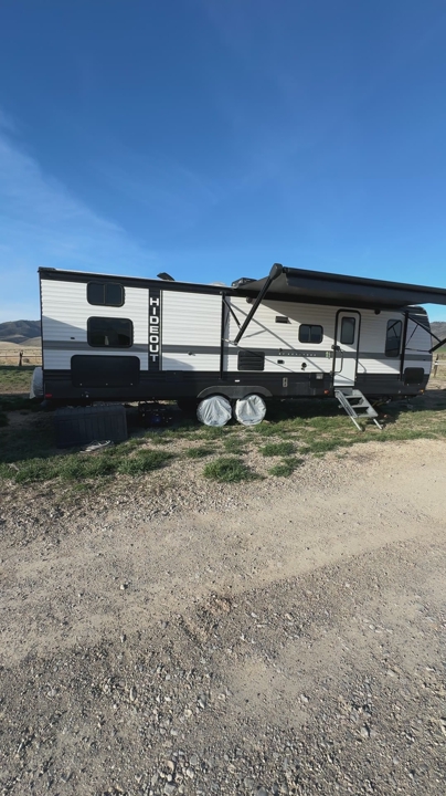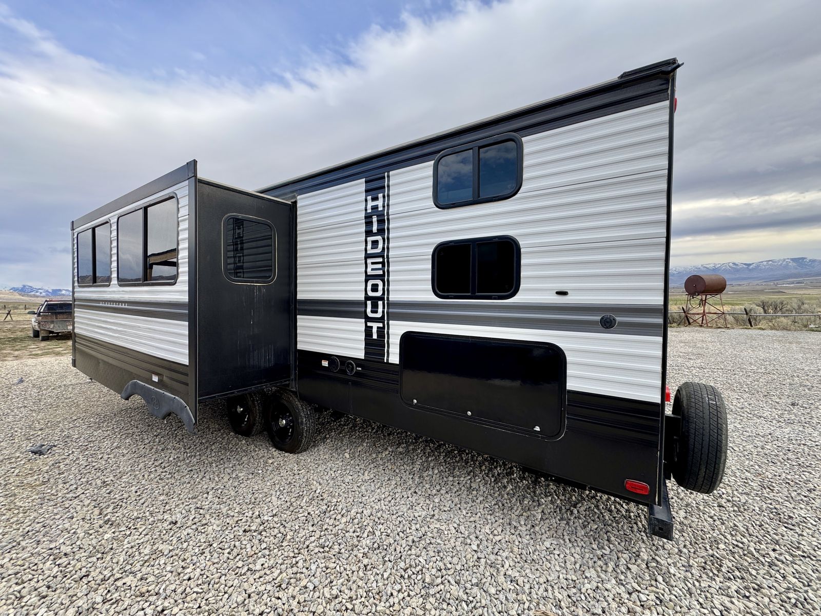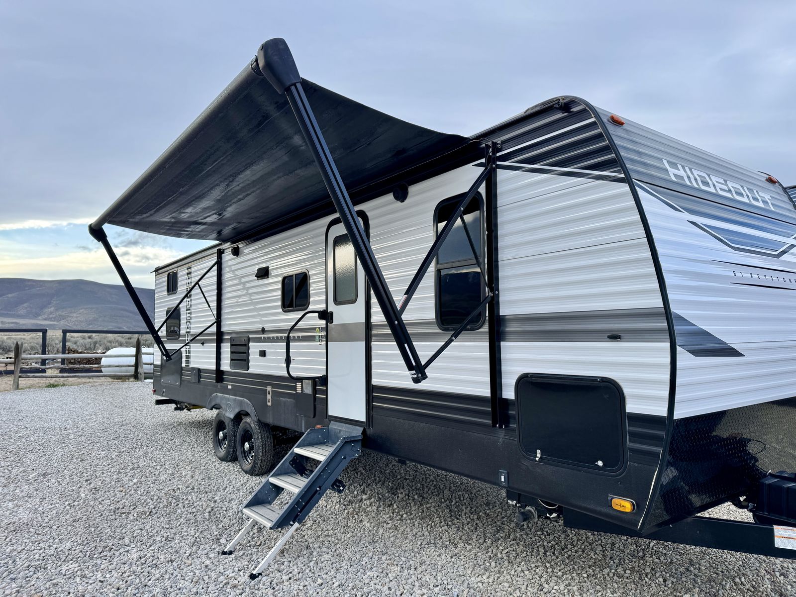 Two Bedroom Bunkhouse Off-Grid Ready Trailer (2023 Keystone Hideout 29QBSW) in great condition with extremely low miles and Solar & Cold Weather Package.