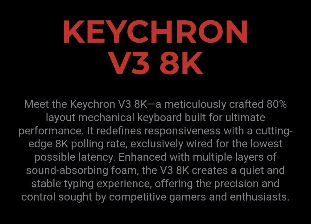 VenmoBrand New Keychron V3 8K QMK Wired Custom Mechanical Keyboard. All the details are in the pictures. Only asking $60. Text if interested 801-903-8337