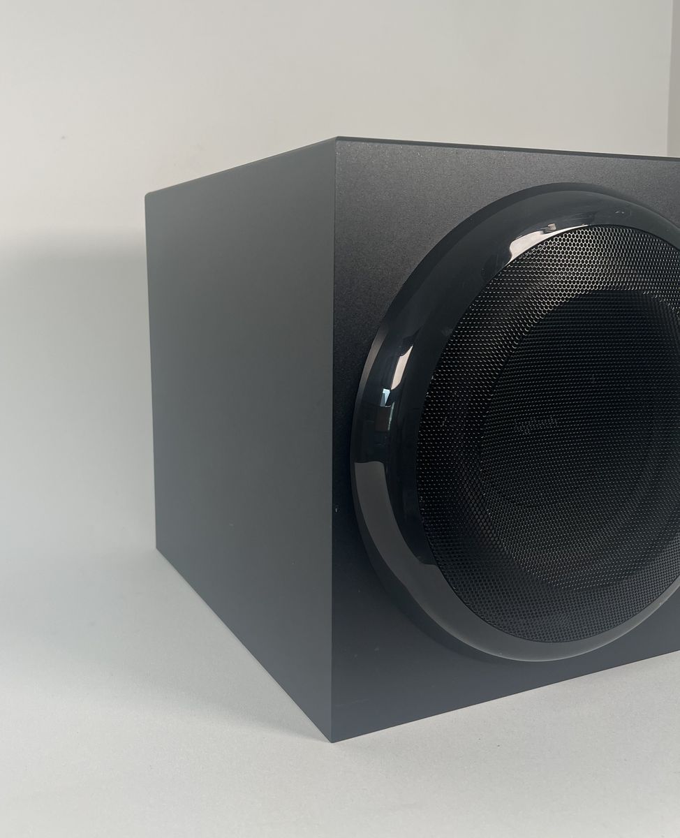 THX-certified 5.1 surround sound system built for immersive audio. Delivers up to 1000 watts peak power with strong bass from the subwoofer and clear sound from the satellite and center speakers. Supports Dolby Digital and DTS decoding when fully connected. The included control console allows for volume adjustment, input selection, and sound mode control directly from the unit.