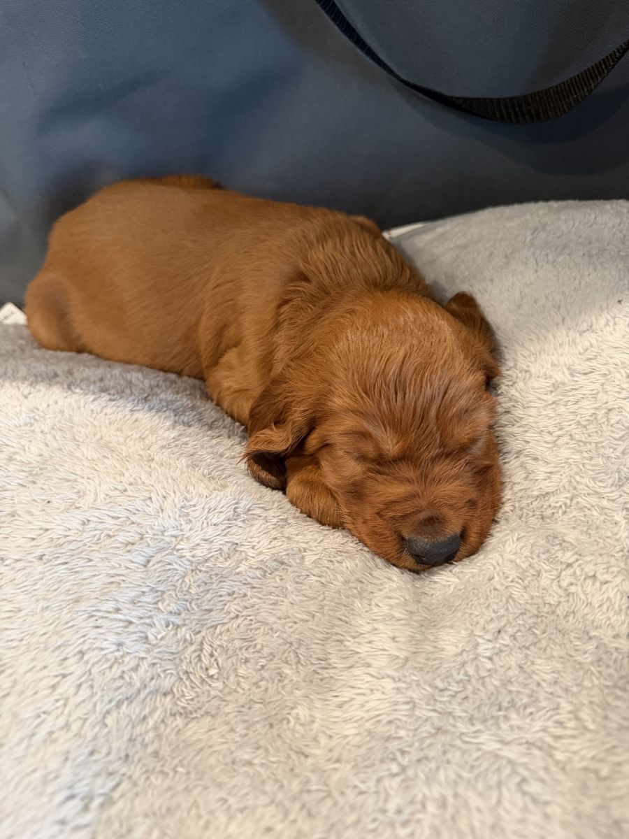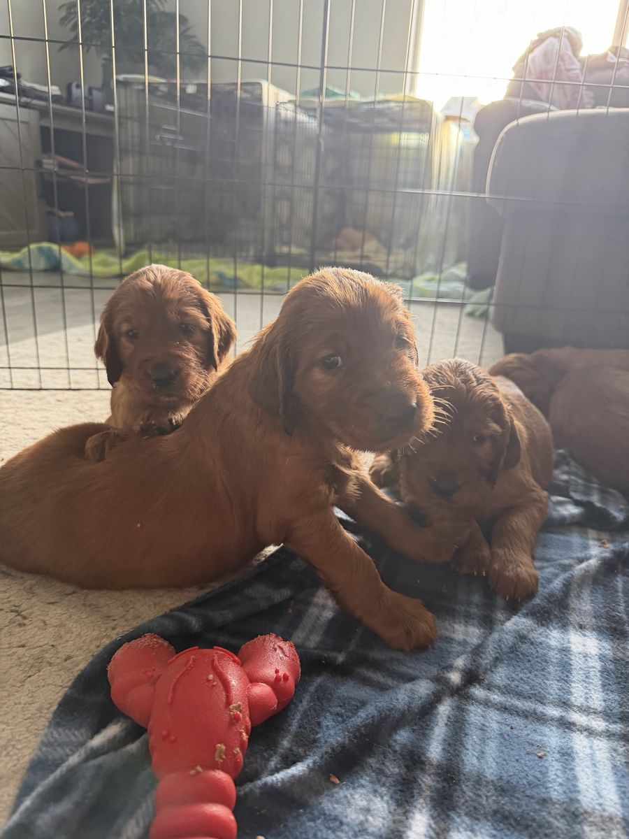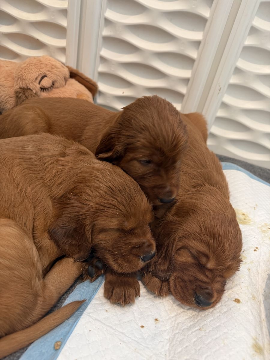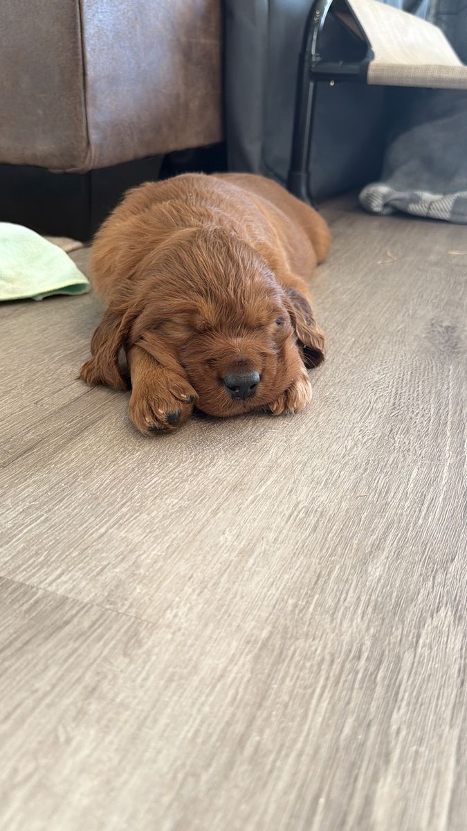 PayPalOur last litter of Irish setter puppies are here and almost 5 weeks old! They were born March 8. Irish setters are the purest souls and want to just be with their people and make them happy. Definitely a dream dog. We have one female left due to a previous buyer no longer able to buy her. They’re ready to go home the week of May 4th!