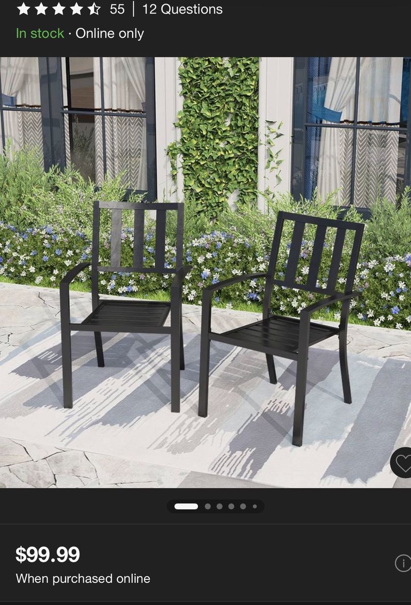 Purchased from Target. In perfect shape. One photo is the actual chairs for sale. The other other is a comprable metal stackable chair, with a slight difference in the design of the back rest. But that’s to gauge retail price vs what I’m asking.