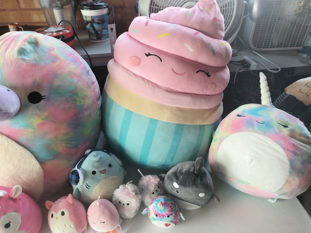 VenmoI have around 50 Squishmallow form 4" to 24" and another 30+ other plush. Not all are in photo. I put them together for a Family Easter event that was cancelled. Now I need them out of here! Overall great condition. Huge variety.