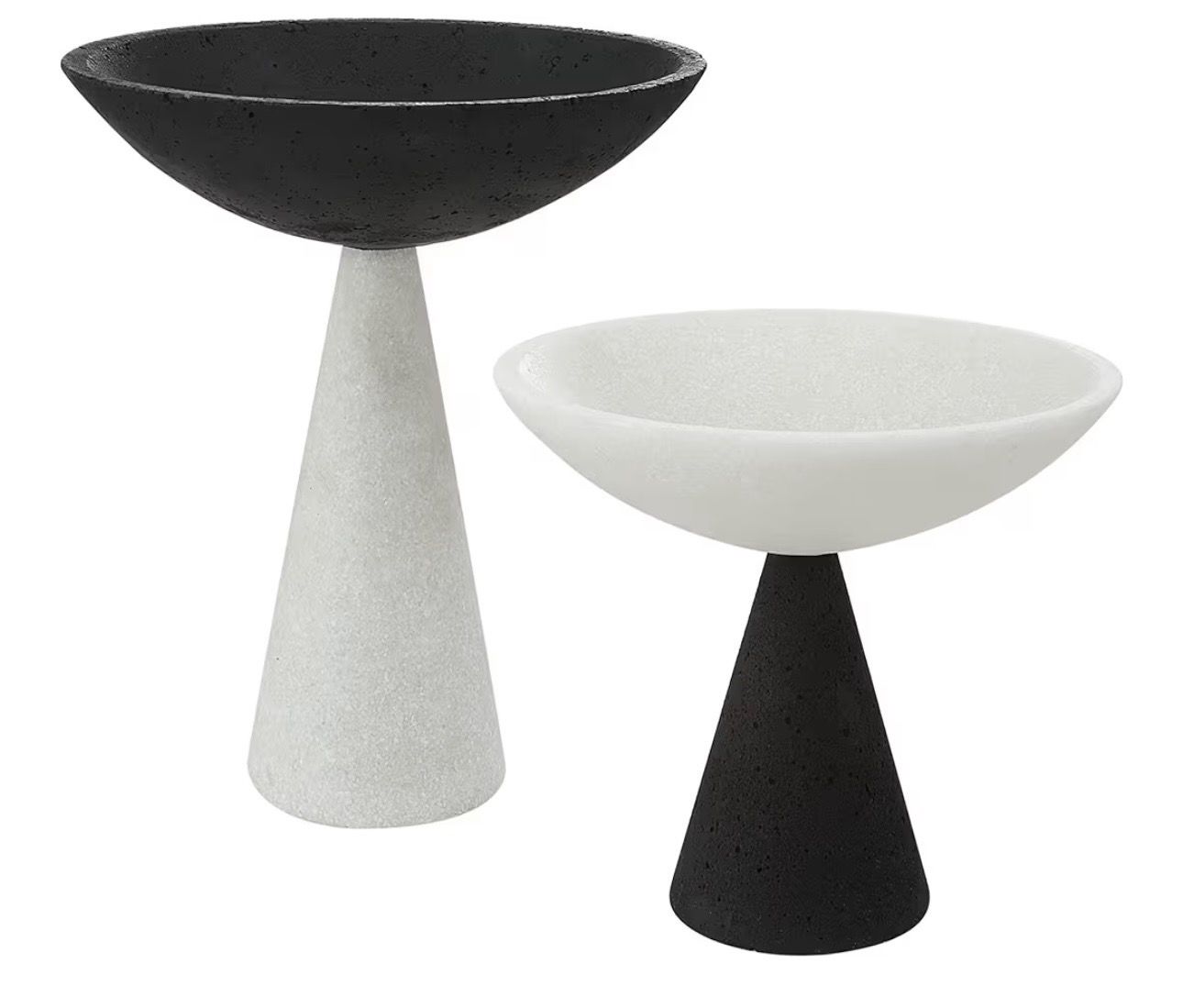 ZelleSet of 2 Antithesis stone pedestal bowls in a striking black + white contrast. Never used.