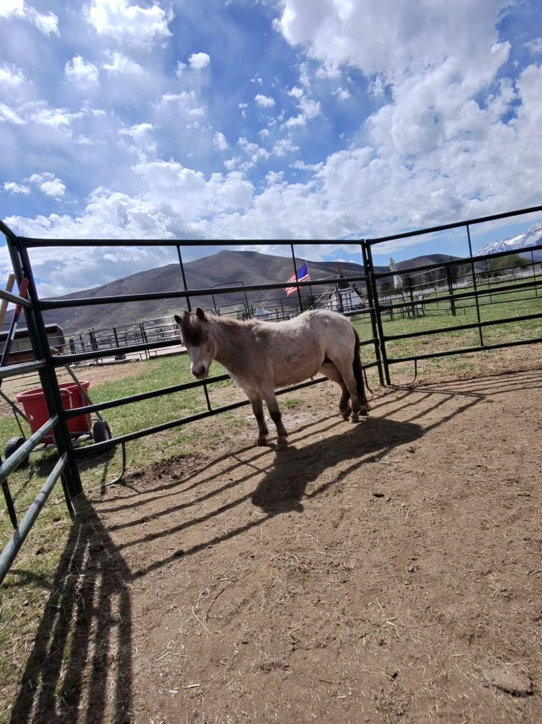 This little girl came to us and our schedules have changed and so I won’t have the time that she’ll need to continue to progress and grow into a good little miniature horse. She needs a home that is going to be kind and firm. She has no vices other than that she is very Timid about everything. She came to us and we’ve cleaned her up a bit and call her “Jewel”.