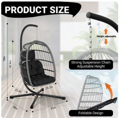 VenmoNew - Rattan Hanging Egg Chair w/ Stand, Suitable for both Indoor and Outdoor Use.