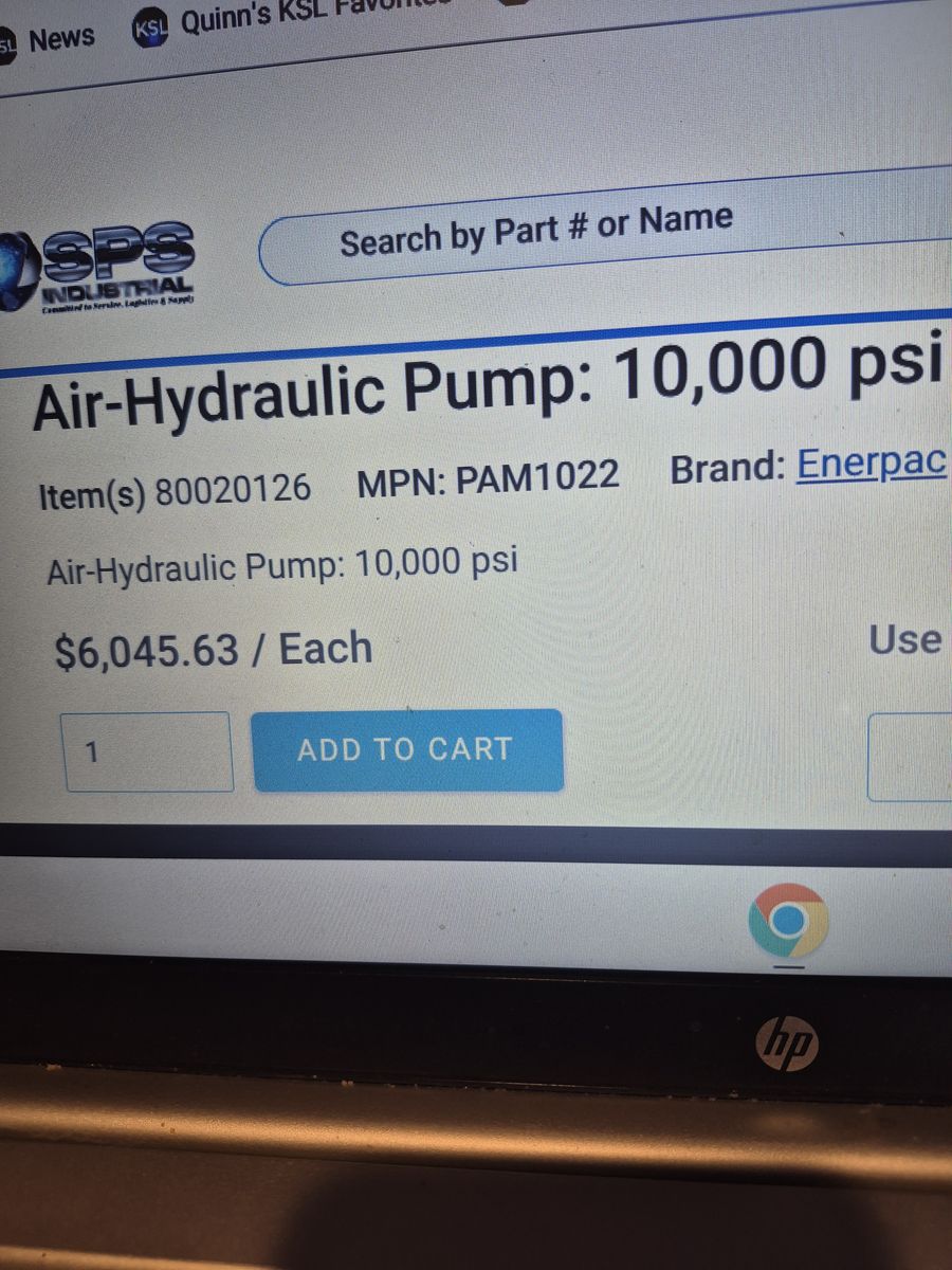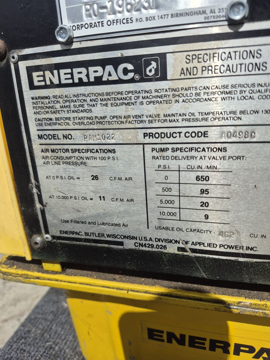 New never used Enerpac hydraulic 10,000 psi pump,uses air,have extra heads,air & water filter manifold. $4500,00 OBO,trade 435-279-3132