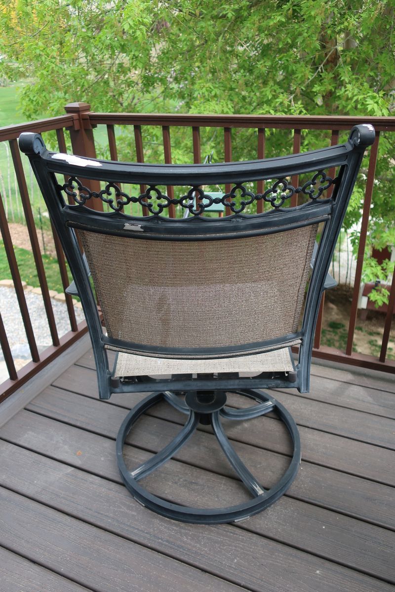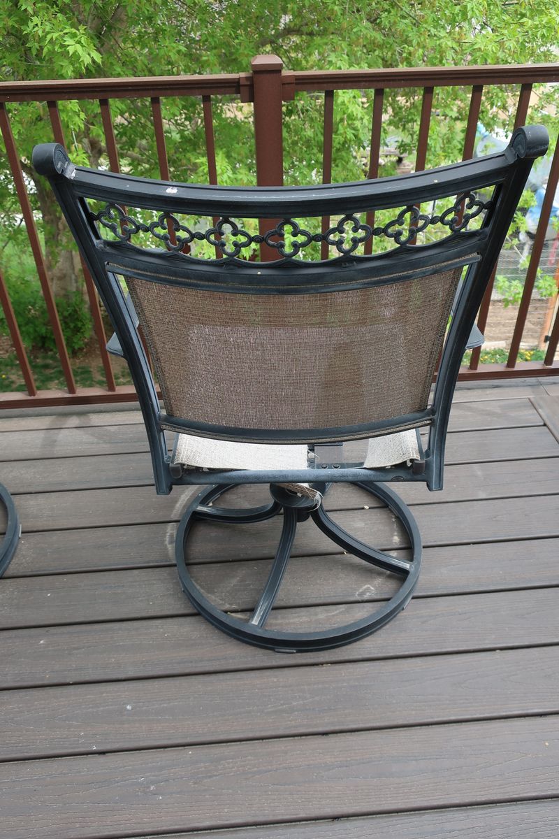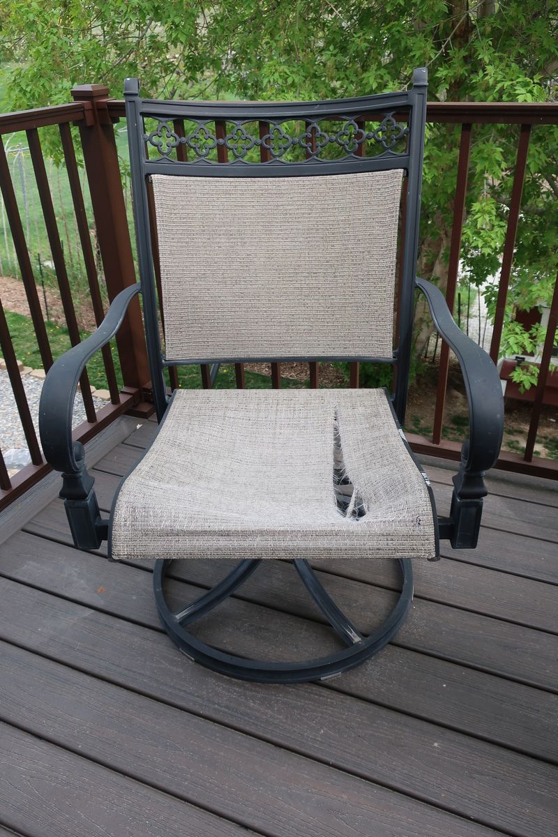 Finish is chipping off of the metal parts, and the seat fabric needs to be replaced.