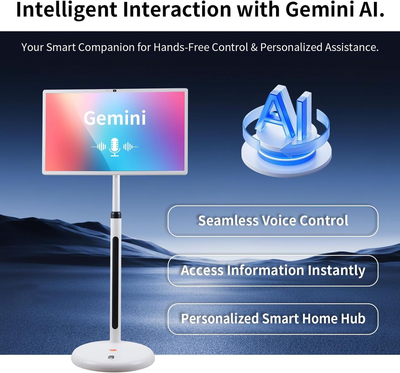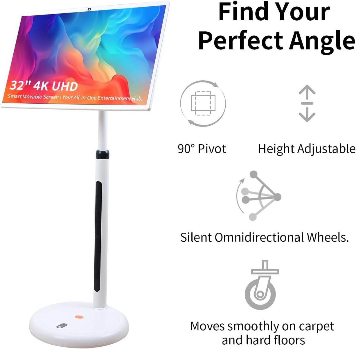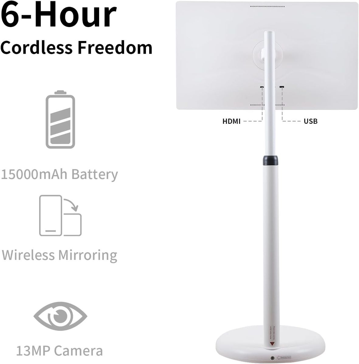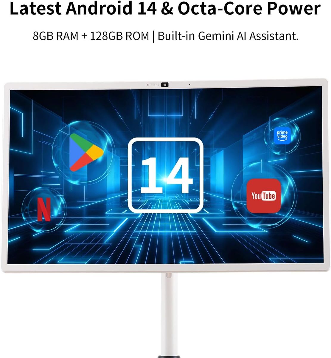 NEW IN BOX! 32" 4K UHD Movable Smart Screen with Android 14, 15000mAh Battery for 6H Playtime, Built-in Gemini AI Assistant, 8G+128G, 10-Point Touch Screen, Silent Wheels & Adjustable Stand