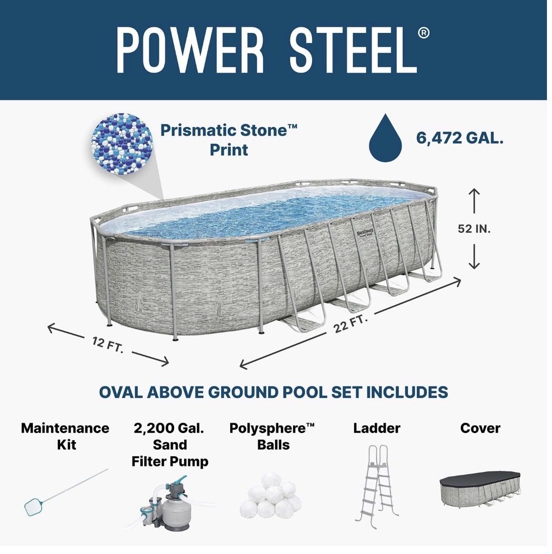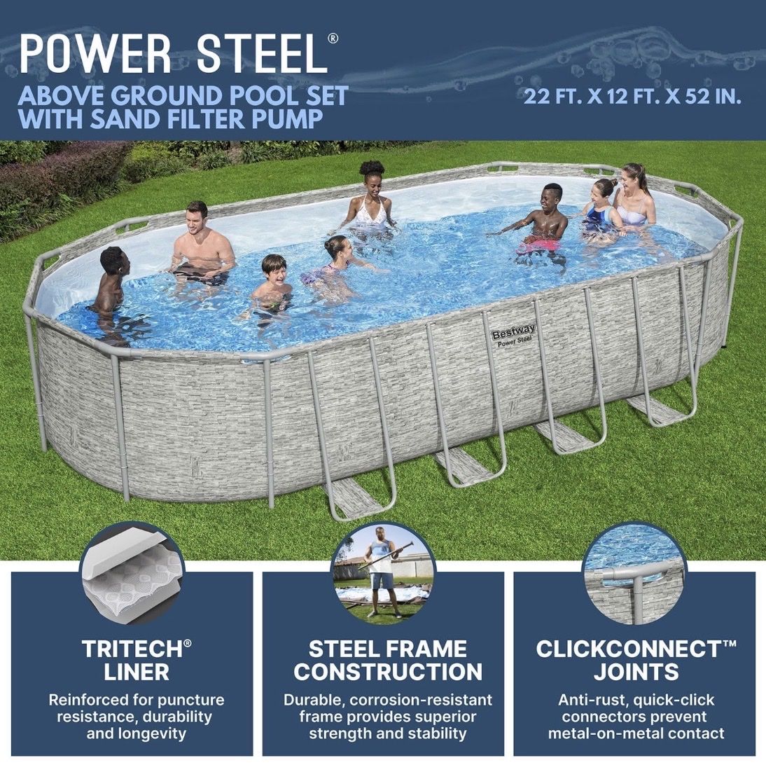 Bestway Power Steel Above Ground Pool Set, L 22’ x W 12’ x H 52" New in the box, located in west valley city
