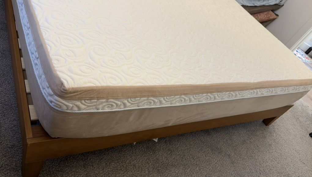 VenmoGreat shape. No stains or anything. I'm fanatically about keeping my mattresses covered so they stay clean. I'm downsizing (after divorce) This is a high end Tempurpedic. I have neck injuries and this bed is amazing.