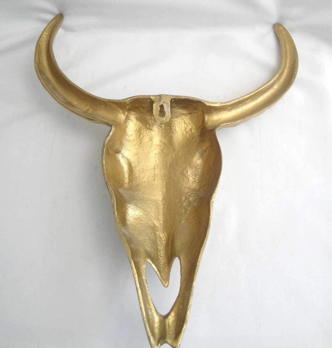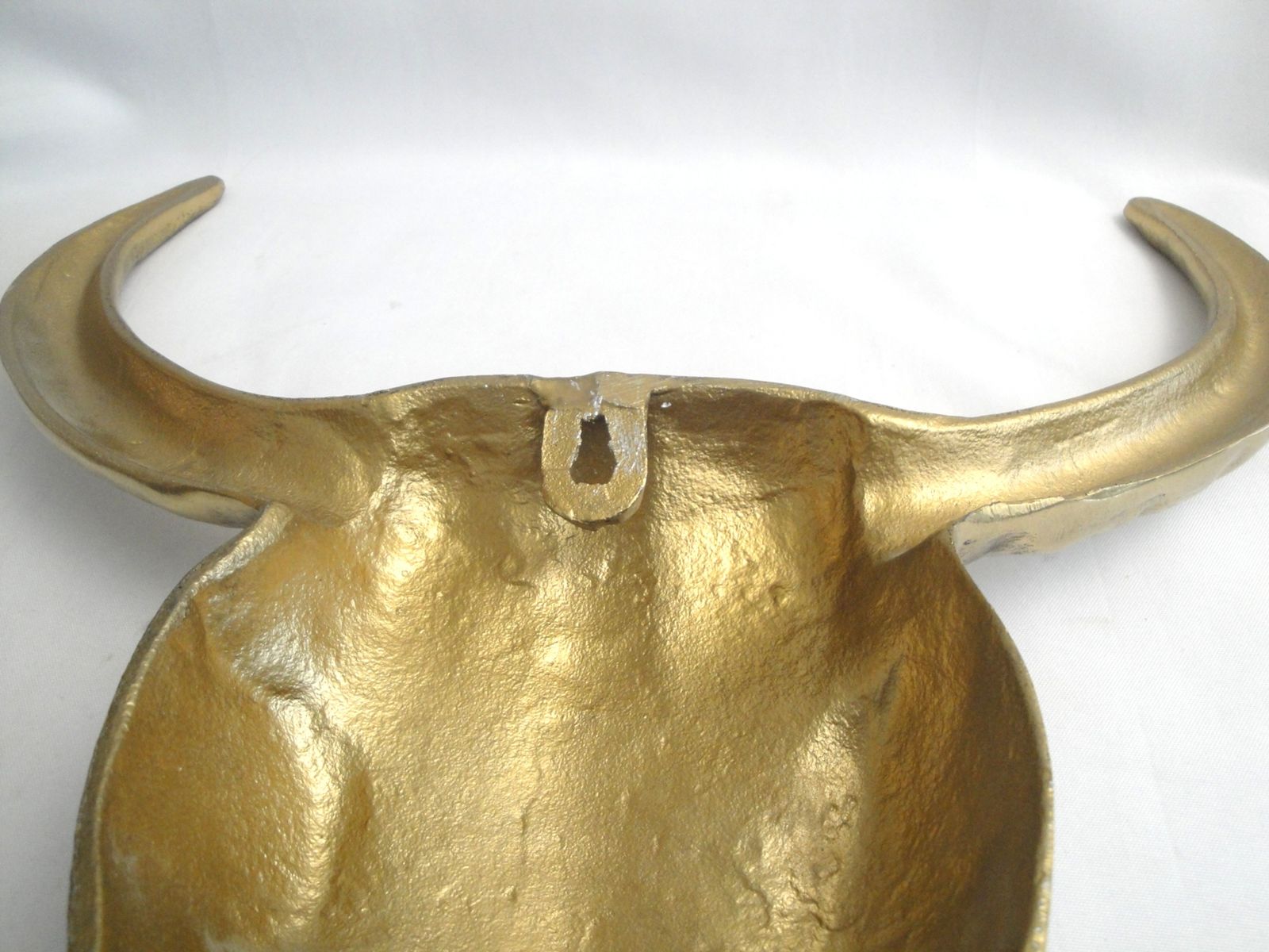 VenmoBeautiful large brass colored metal cow skull wall hanging. Measuring 20" long x 16" wide x 2.5" deep. Excellent condition; looks new and coming from a smoke free environment.