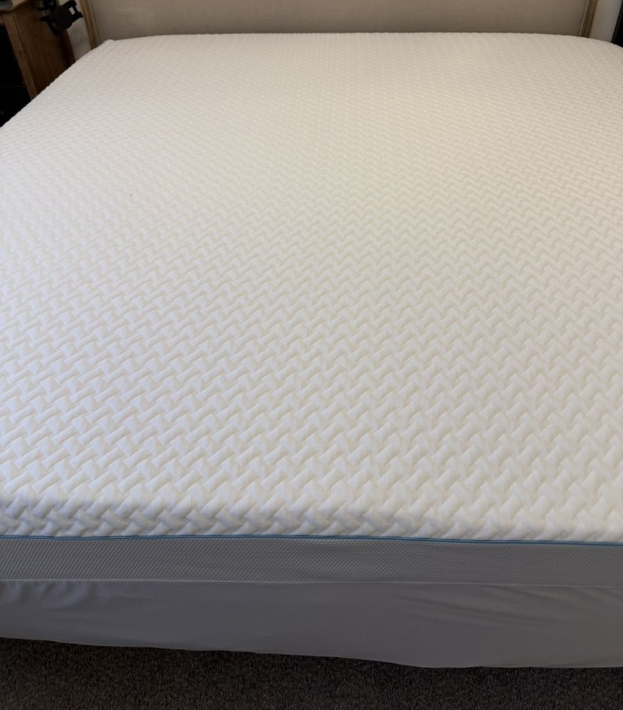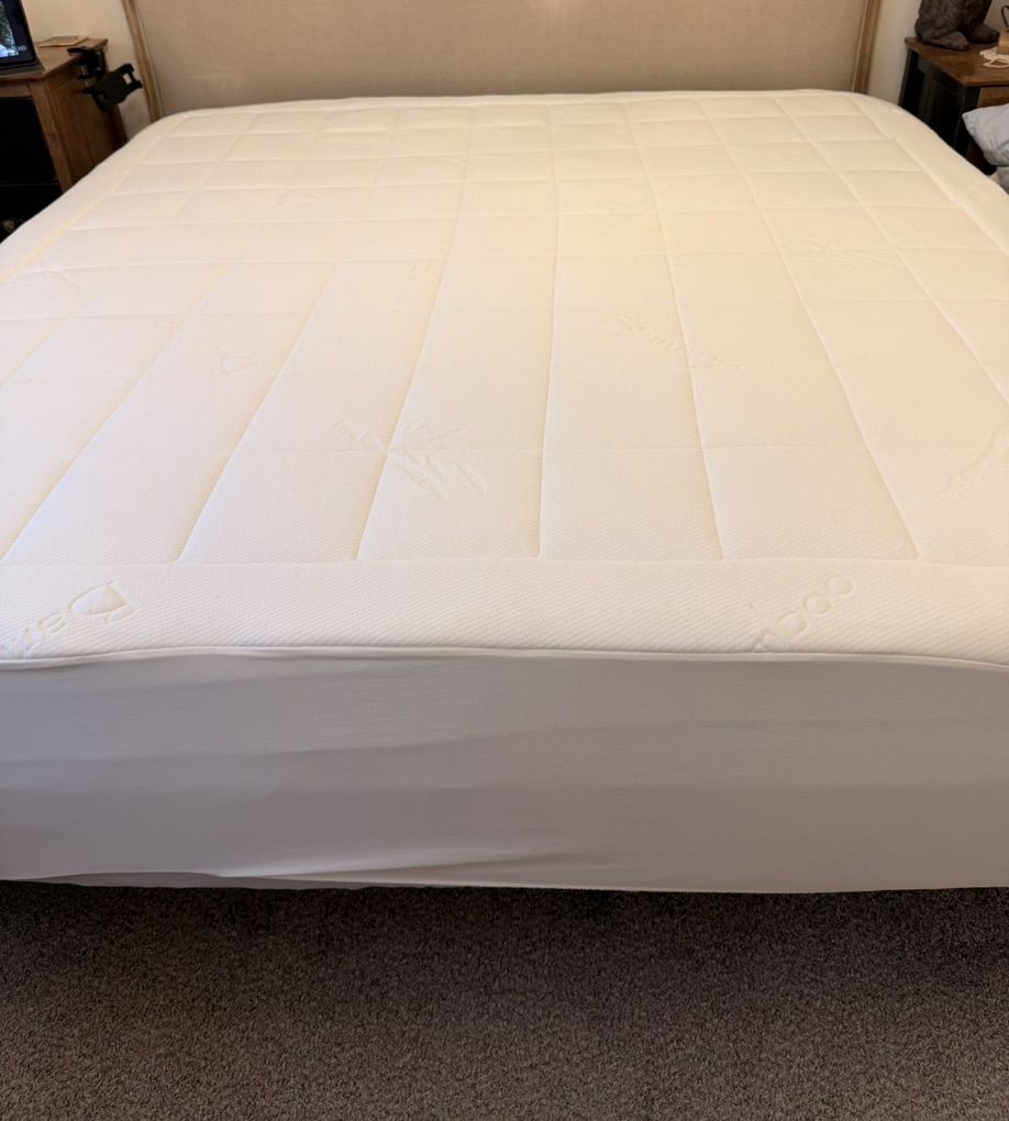VenmoThis is made by Tempurpedic. It is super clean I keep all things covered. No stains.