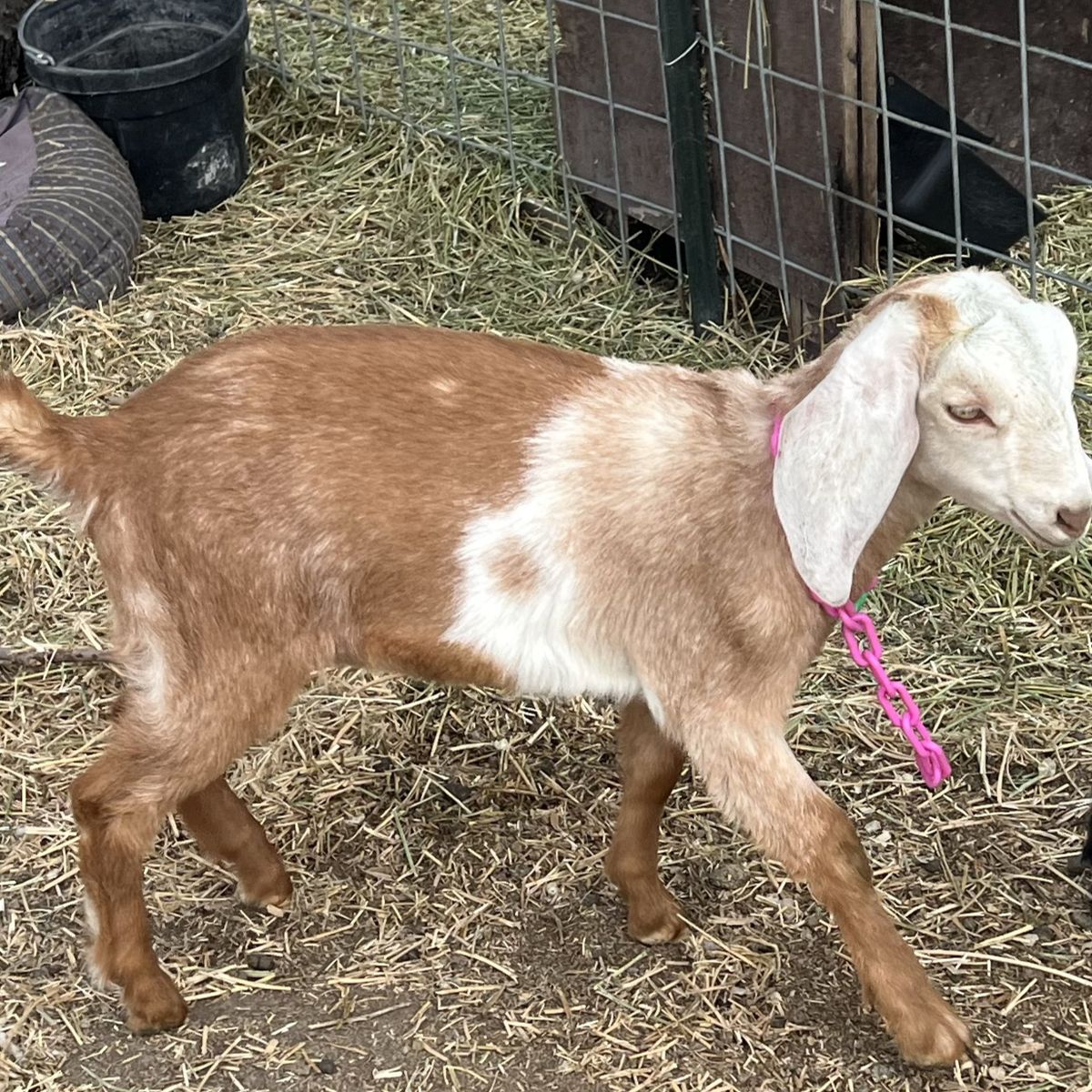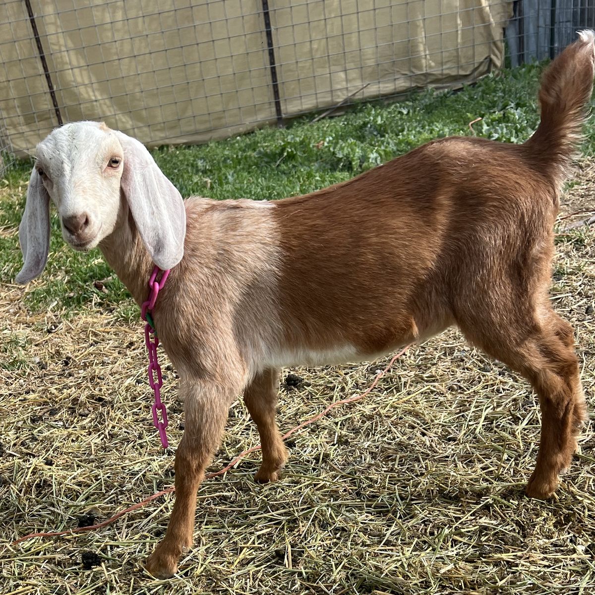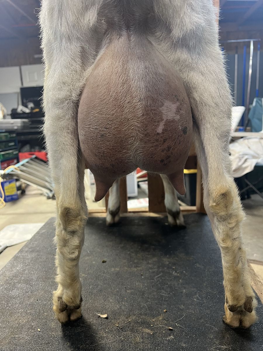 Venmo75%Nubian, 25%Boer. Born February 3rd. Her mother is on her way to being an excellent milker, producing about 3/4gal a day as a first freshener. Her udder is pictured. Her grandmother is the best milker I’ve ever had, peaking at about 1.5gal a day.
