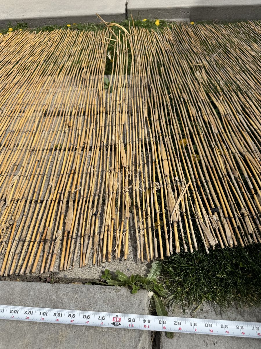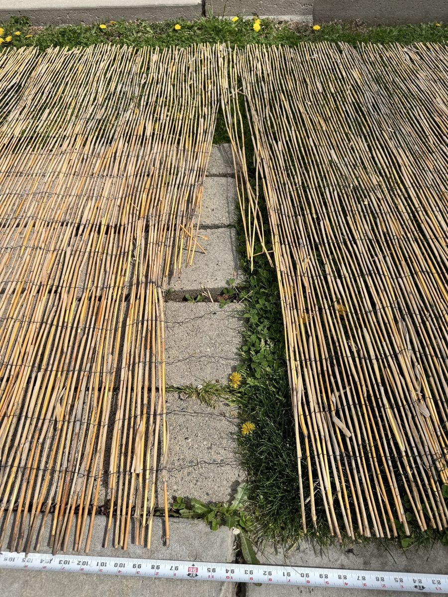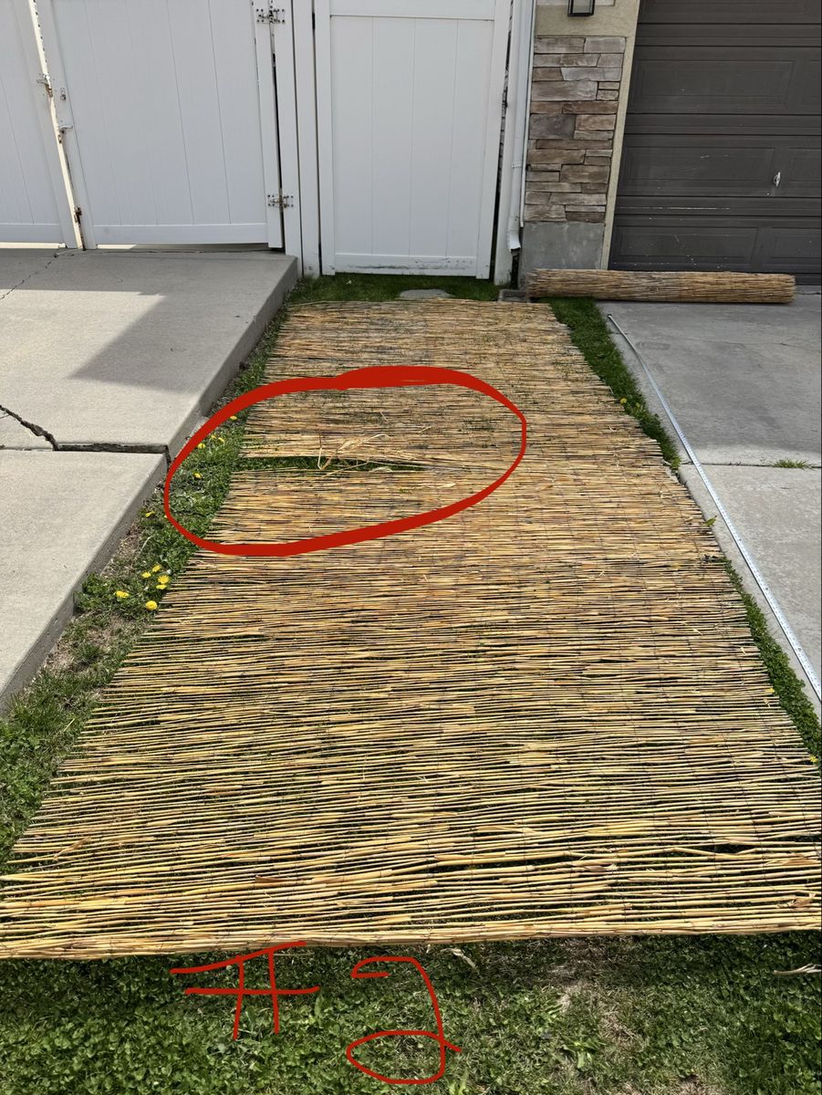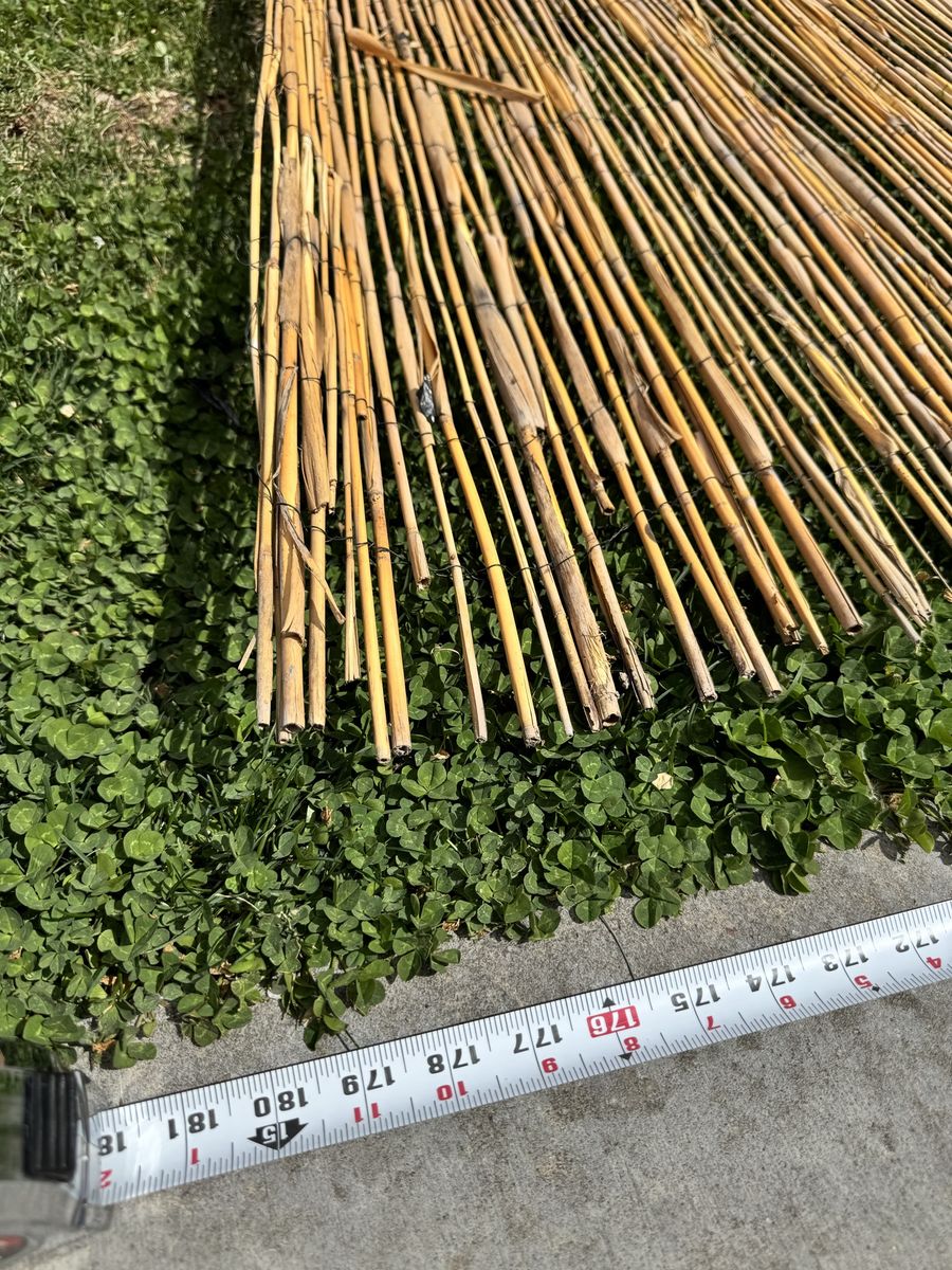Description from the Lowe’s website: Enhance your outdoor living space with natural and appealing reed fence. The Garden Craft oft H x 15ft L reed tence is attractive, light weight, and extremely versatile. Standing 4ft high, this fence provides a great solution to increase privacy needs for your yard, garden or outdoor living area. Reed is connected with rust resistant galvanized steel wire. Fence can be easily rolled for storage purposes. Can be used with stand alone fence posts or added to an existing fence to enrich the ambiance. • Fence measures 6ft H and 15ft L • Light in weight and partially transparent • Use as an addition to existing fence or as a standalone with fence posts • Reed is connected with durable, rust-resistant galvanized wire • Makes a very attractive addition to outdoor living spaces including patios, pool areas, tiki huts, garden fence and more • Easily rolls up if needing to store • Will not stand alone, requiring posts or some sort of support • Easily adapts to contours of landscapes, hardscapes, fence or structures