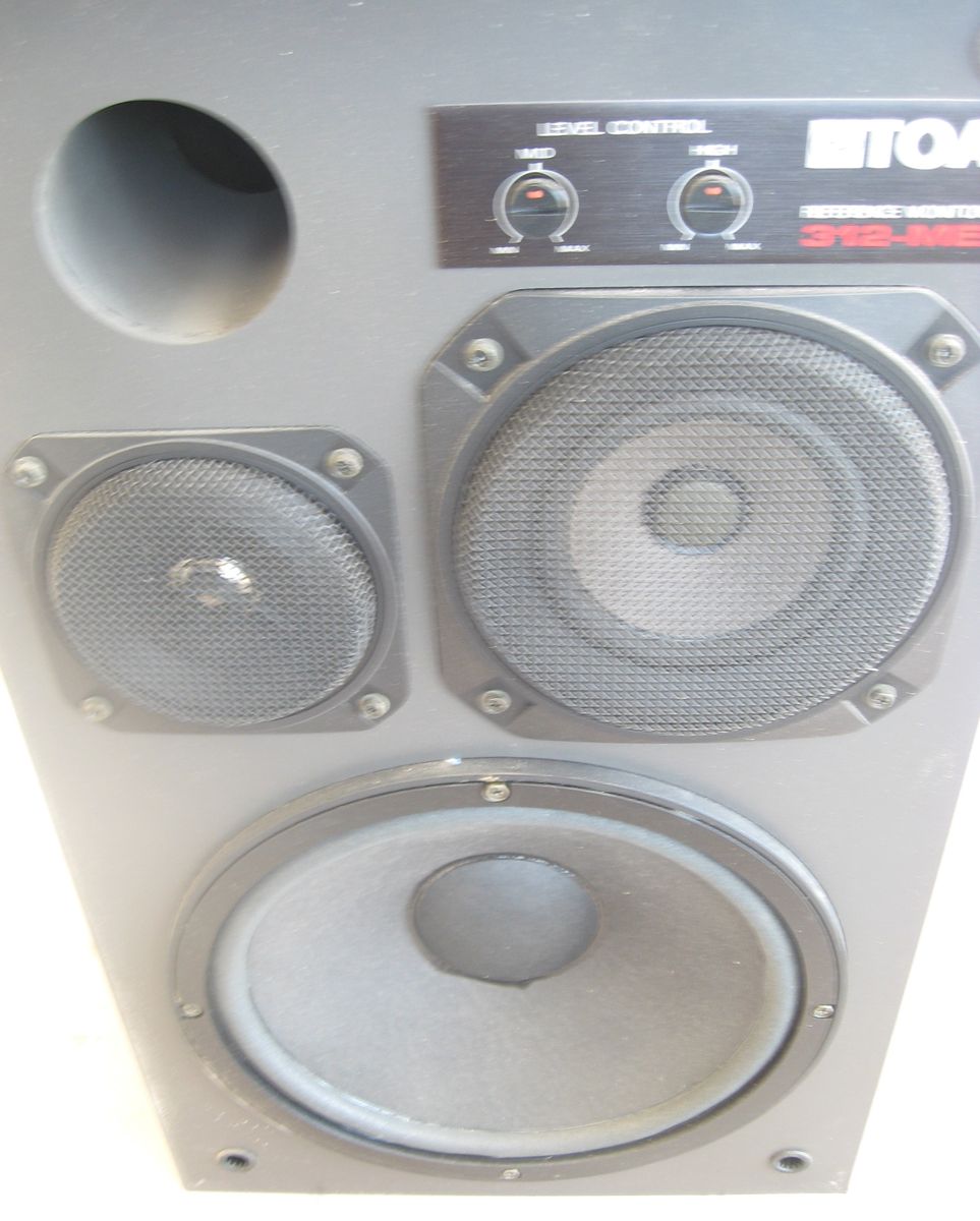 TOA 312-ME studio monitors. Each speaker contains a 10" woofer, 6" mid-range, and a 4" tweeter. $100 for the pair.