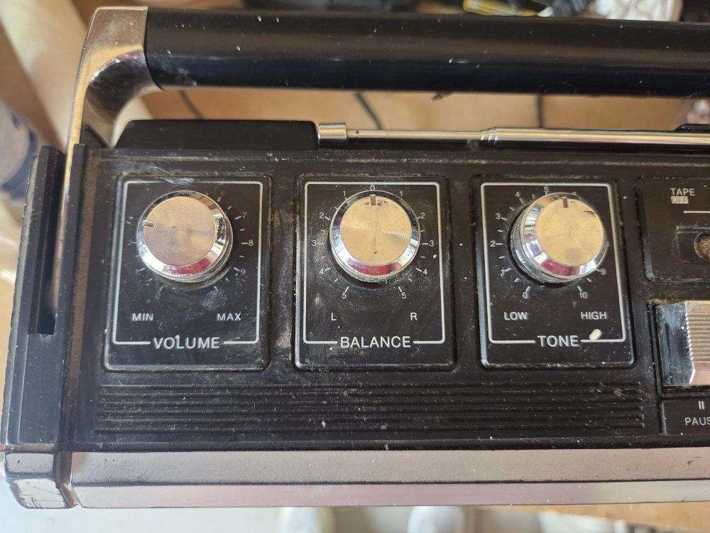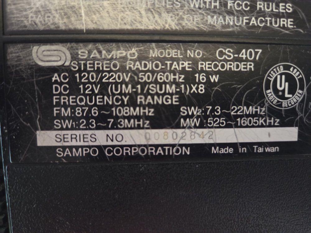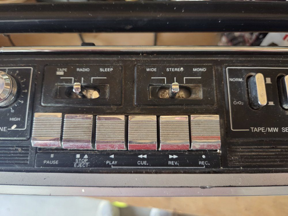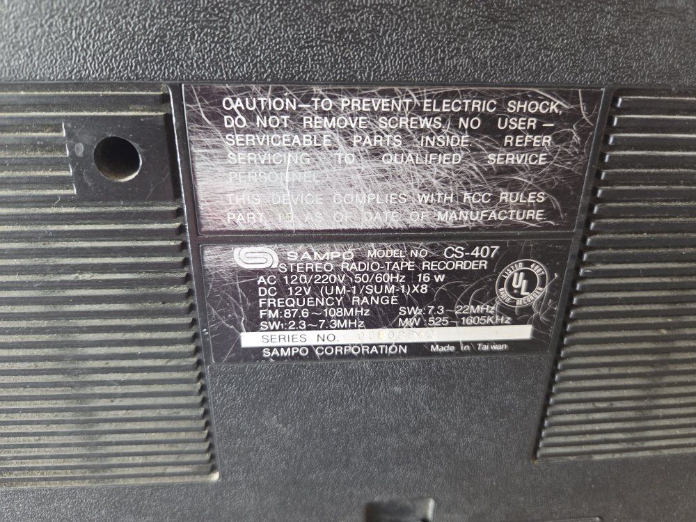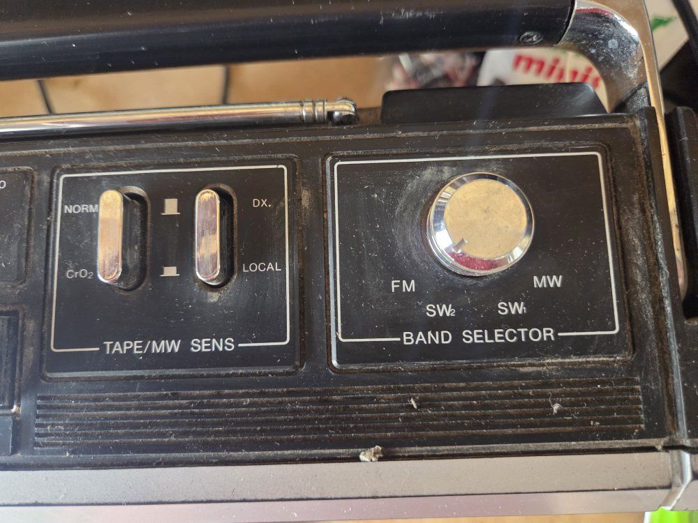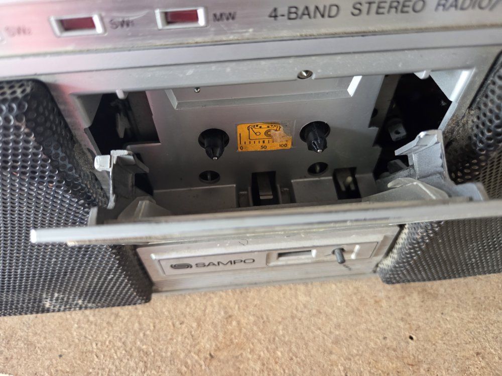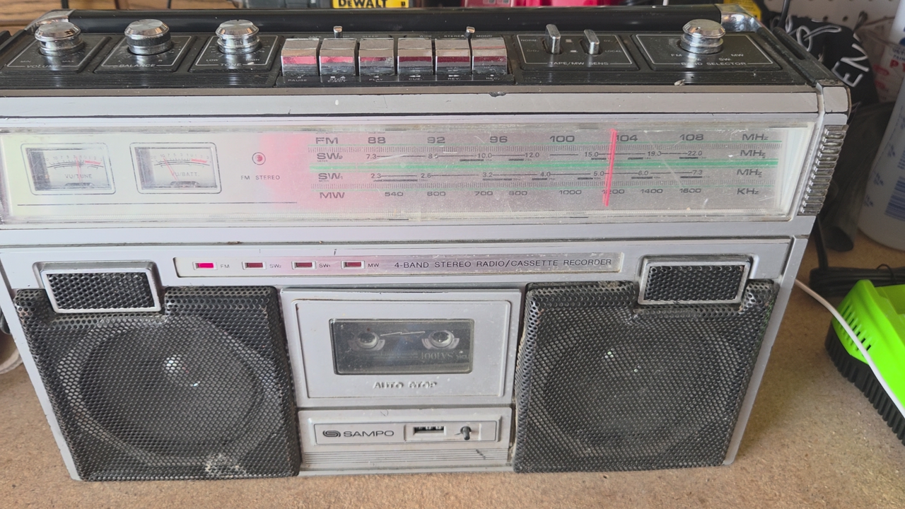 VenmoSampo boom box from 80s. dound not greatest. but plays radio. Just tape deck doesn't work. good garge radio