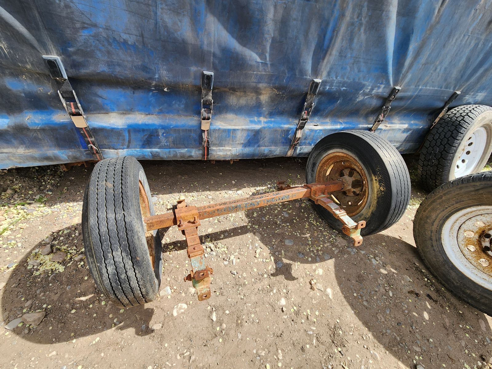 6lug 2" axle, 53" hubface, with farm style wheels, don't know the load rating for the axle.