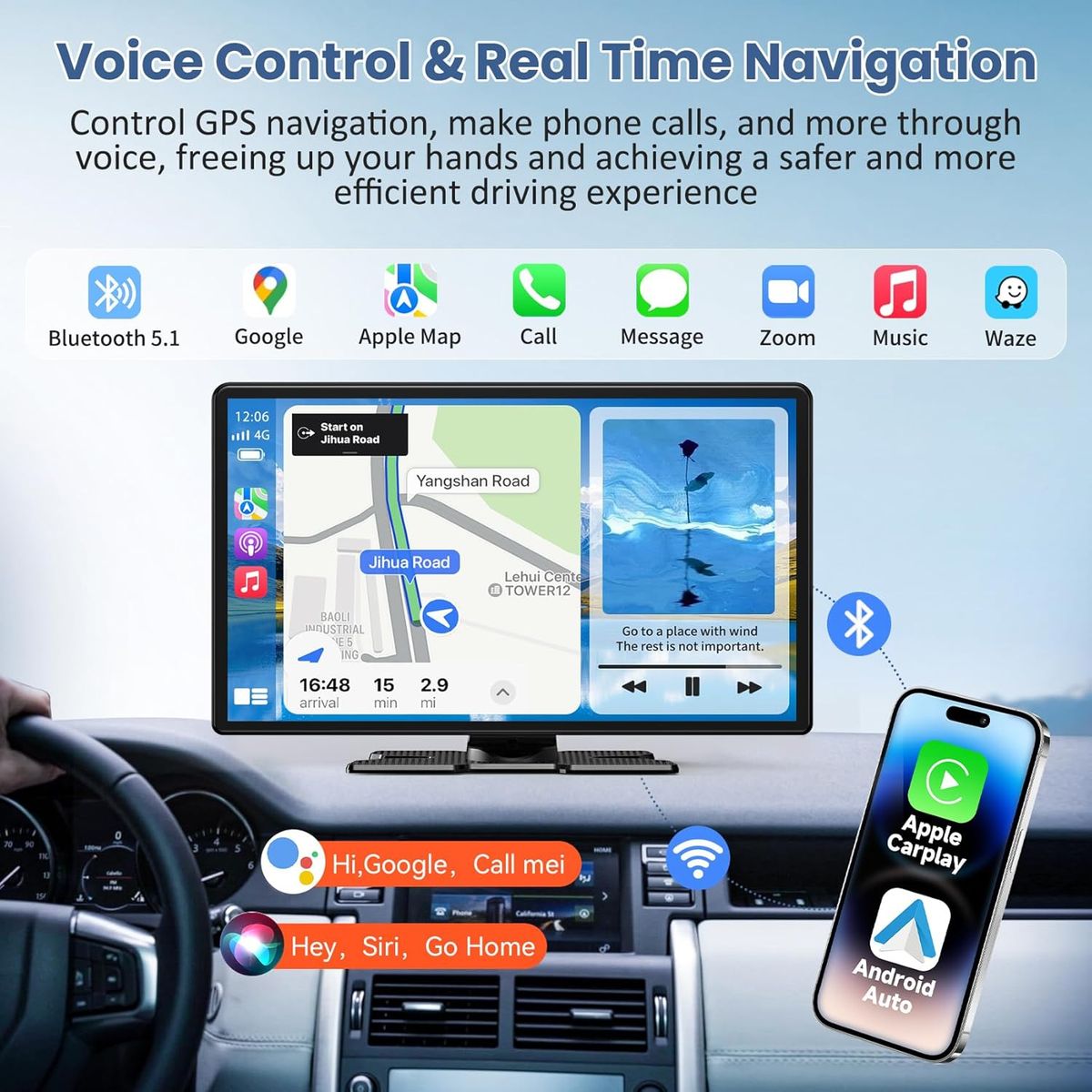 NEW IN BOX! Portable Apple Carplay Screen, Wireless Car Play & Android Auto Touch Screen, Car Stereo with App View/4K Dash Cam/Backup Camera/Mirror Link/Voice Control/Music Play/GPS/Bluetooth/FM